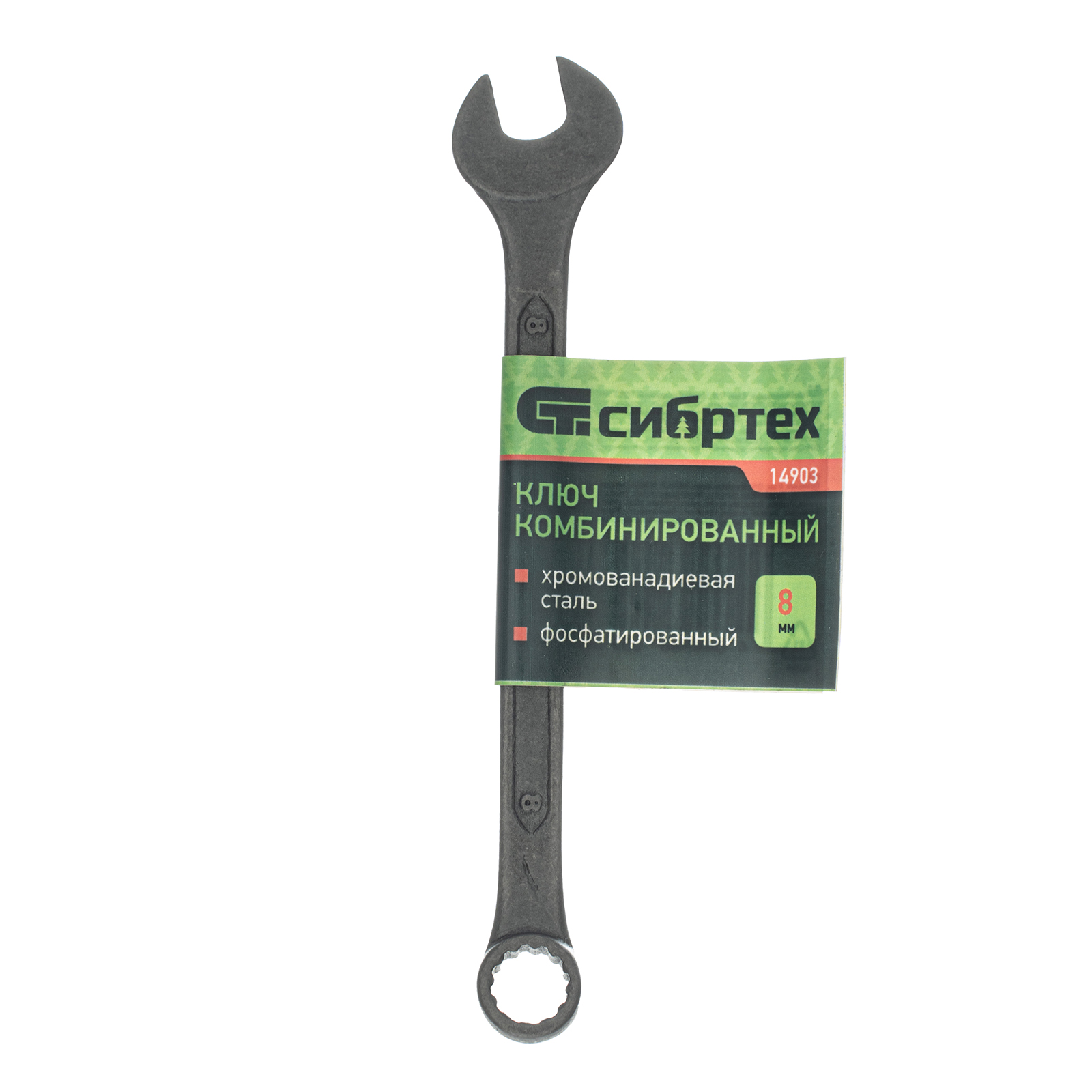 Ключ комбинированый, 8 мм, CrV, фосфатированный Сибртех в Казани