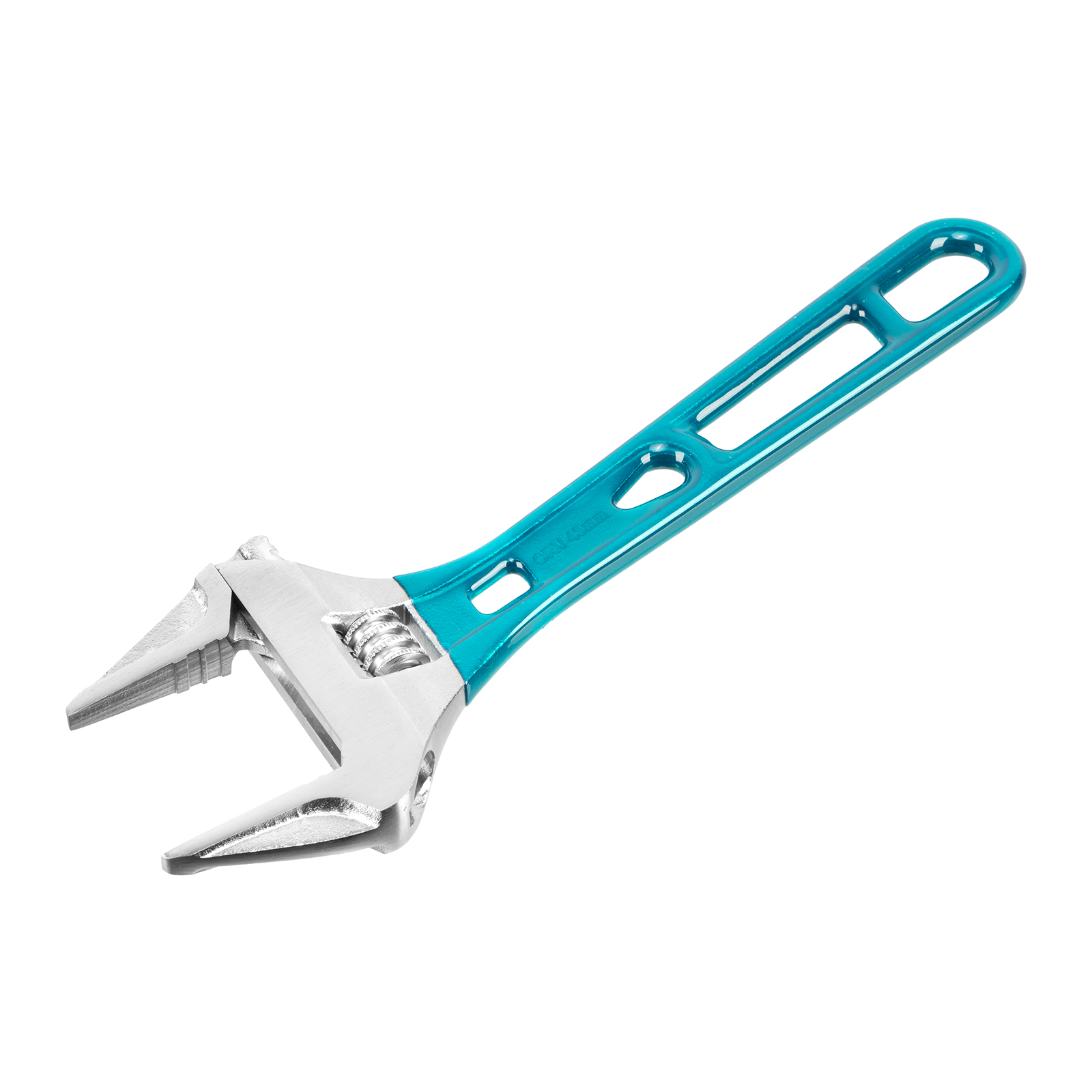 Облегченный разводной ключ Gross 15559 длиной 250 мм, из стали CrV, подходит для работы как с мелкими, так и с крупными крепежными элементами. Максимальный диапазон раскрытия зева составляет 43 мм. Конструкция инструмента усилена благодаря дополнительным ребрам жесткости на рукоятке. Ребристая рабочая поверхность губок обеспечивает надежный захват деталей и повышает точность работы.