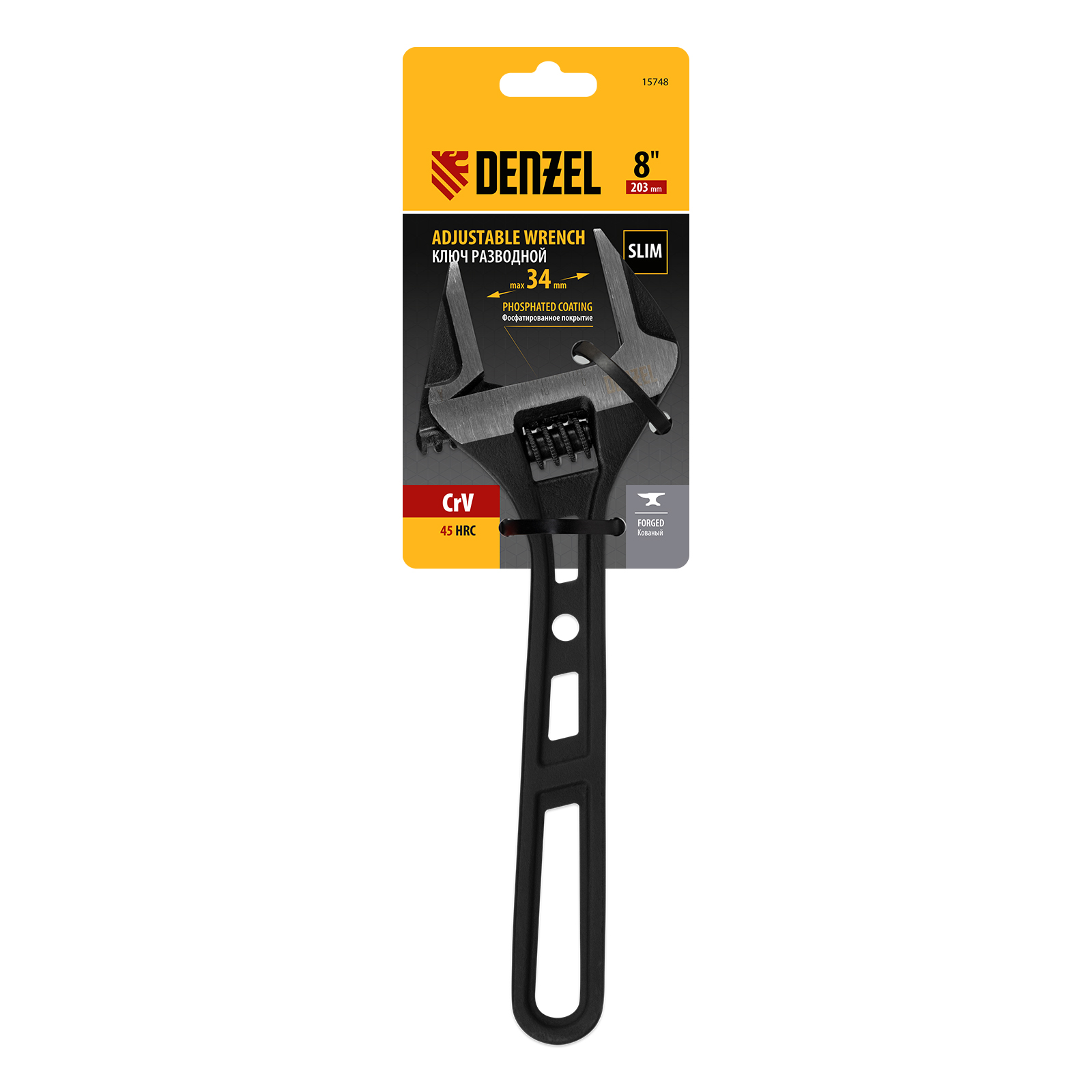 Ключ разводной кованый Denzel 15748 длиной 200 мм, из стали CrV, используется для монтажа и демонтажа крепежных элементов диаметром до 34 мм. Благодаря тонким губкам удобен для работы в труднодоступных местах. Имеет широкую область применения: сантехнические работы, мелкий бытовой ремонт, полупрофессиональная сфера и т. д.