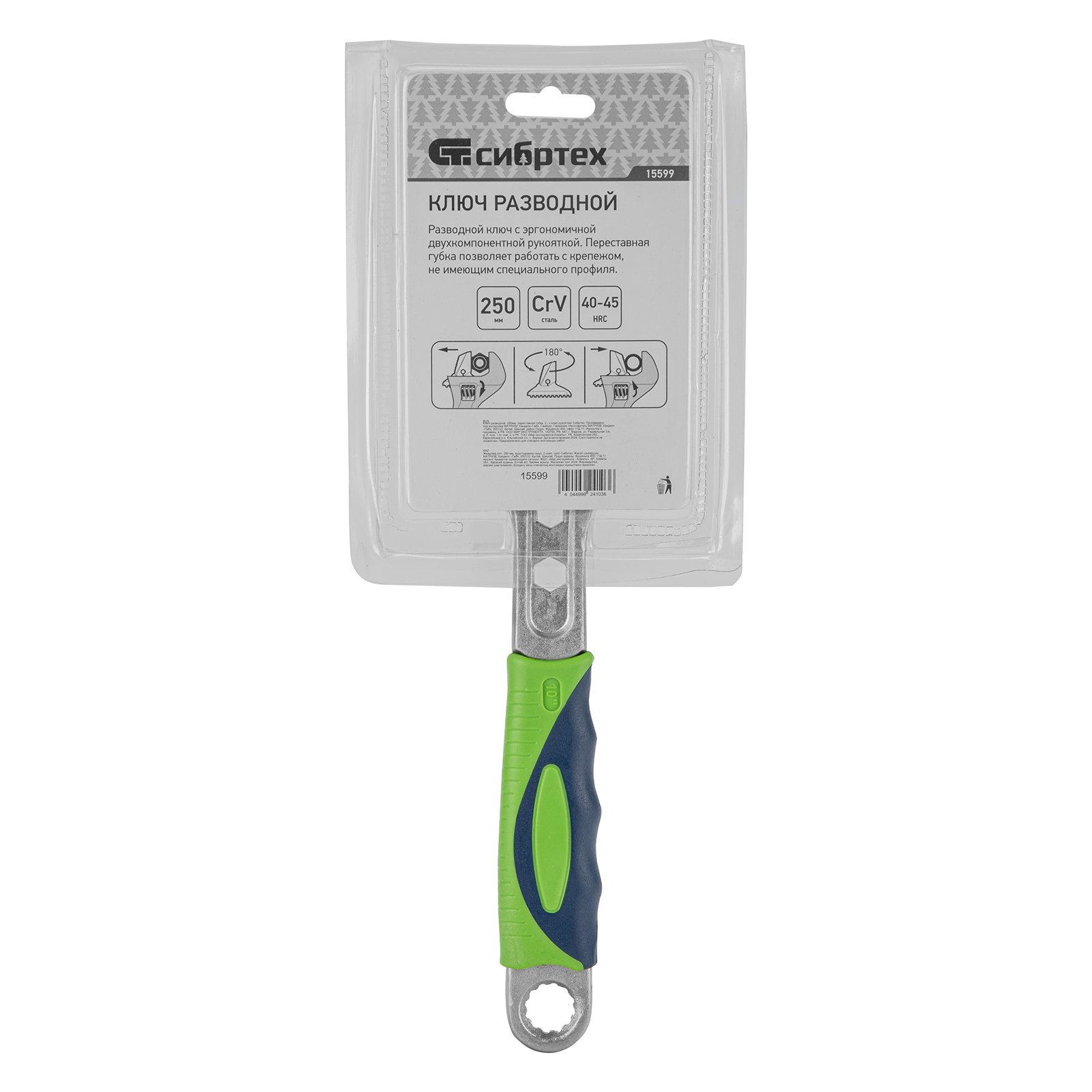 Ключ разводной, 250мм, переставная губка, 2 - х комп.рукоятка Сибртех