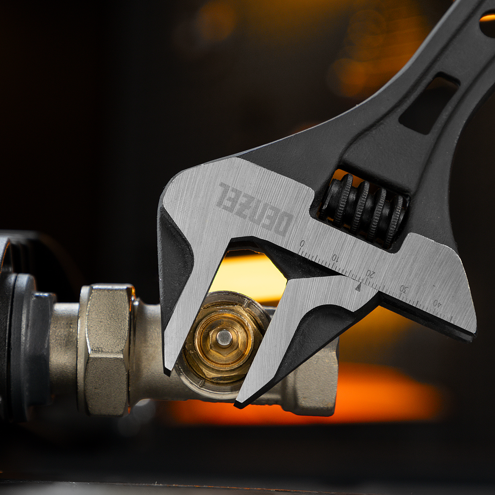 - Удобная эксплуатация — метрическая линейка на ключе помогает выставить нужный размах зева.