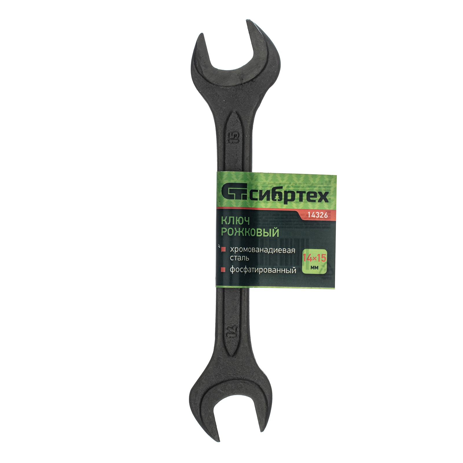 Ключ рожковый,14 х 15 мм, CrV, фосфатированный Сибртех