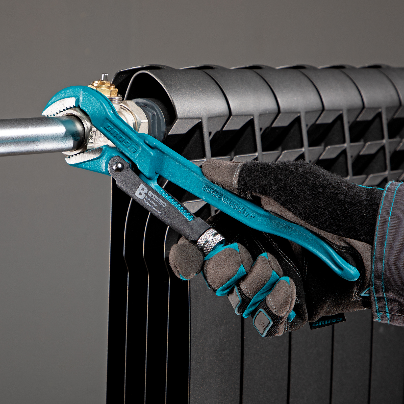 Цельнокованый трубный рычажный ключ Gross №0 15620 из стали CrV, тип «В», служит для захвата и вращения труб и фитингов диаметром 0,5″. B-образные губки удобны для работы с плоскими и объемными деталями в труднодоступных местах. Рычажный механизм увеличивает усилие сжатия, что экономит силы мастера. Ключ пригодится частным и профессиональным мастерам для работы в быту и на производстве.