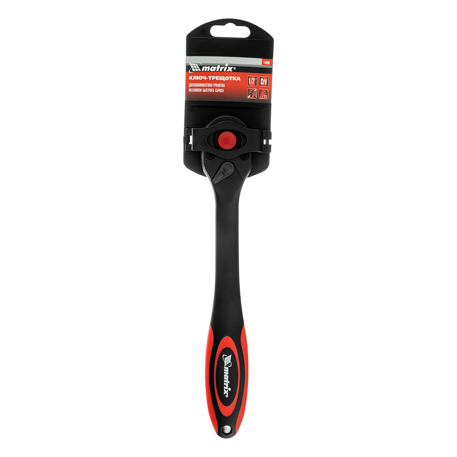 Ключ-трещотка 1/2, 72 зуба, с быстрым сбросом, CrV, двухкомпонентная рукоятка Matrix
