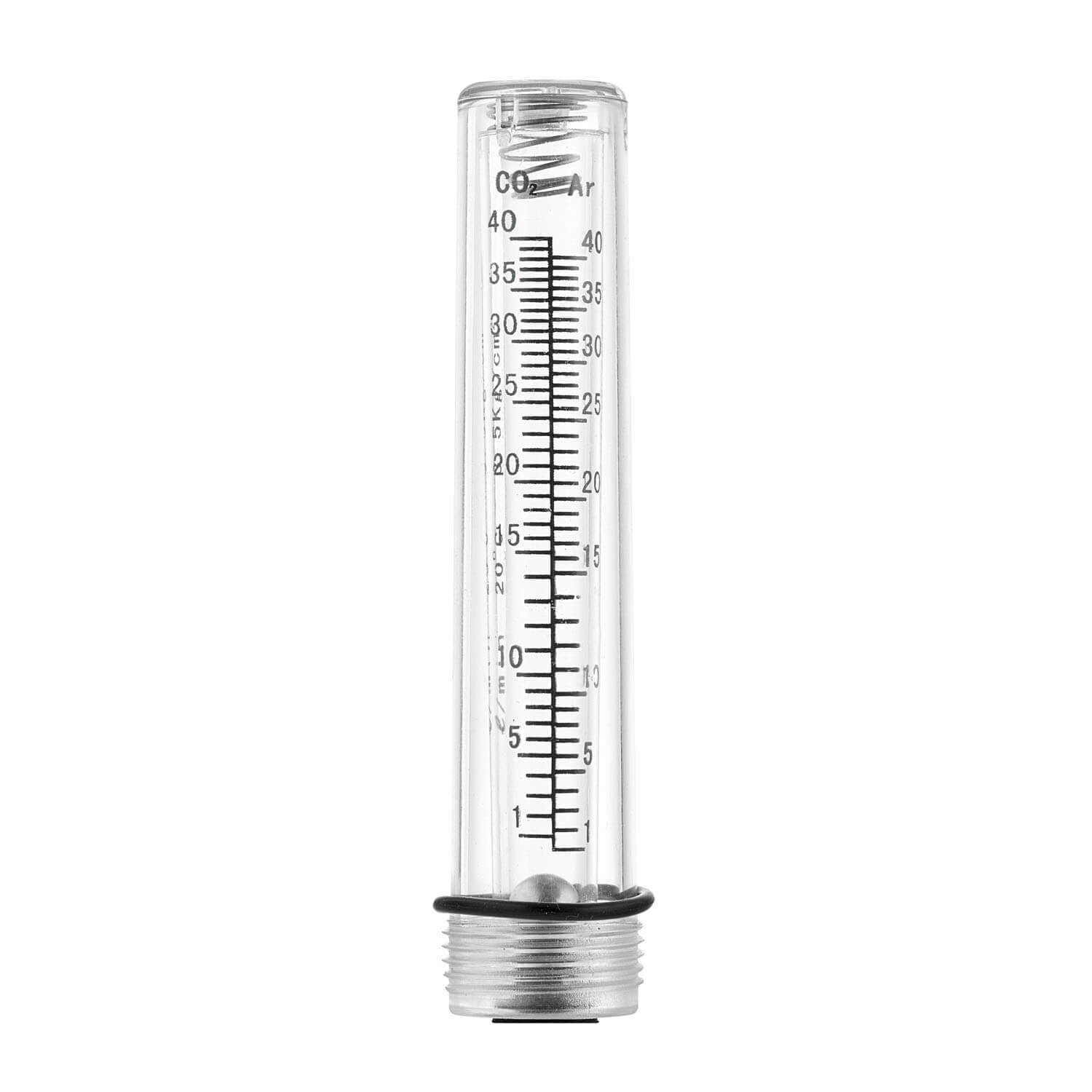 Колба выполнена из прозрачного пластика, по нижнему краю расположена резьба М22х1,5 для подсоединения к регулятору расхода газа. Внутри наружной пластиковой колбы, размещена малая пластиковая колба для шарика-поплавка. На ней нанесена двойная шкала расхода газов Ar/CO₂, которая показывает расход каждого из них (л/мин).