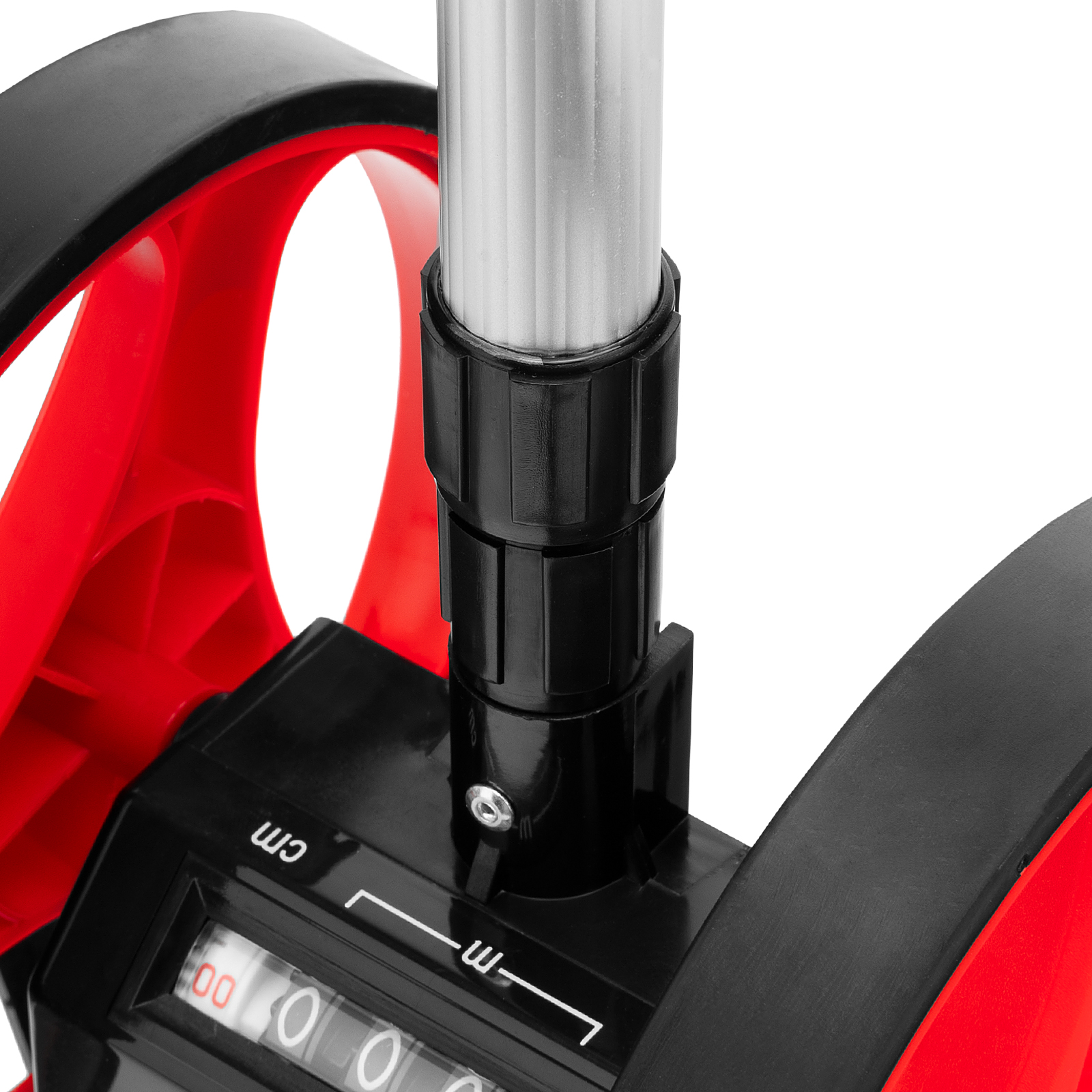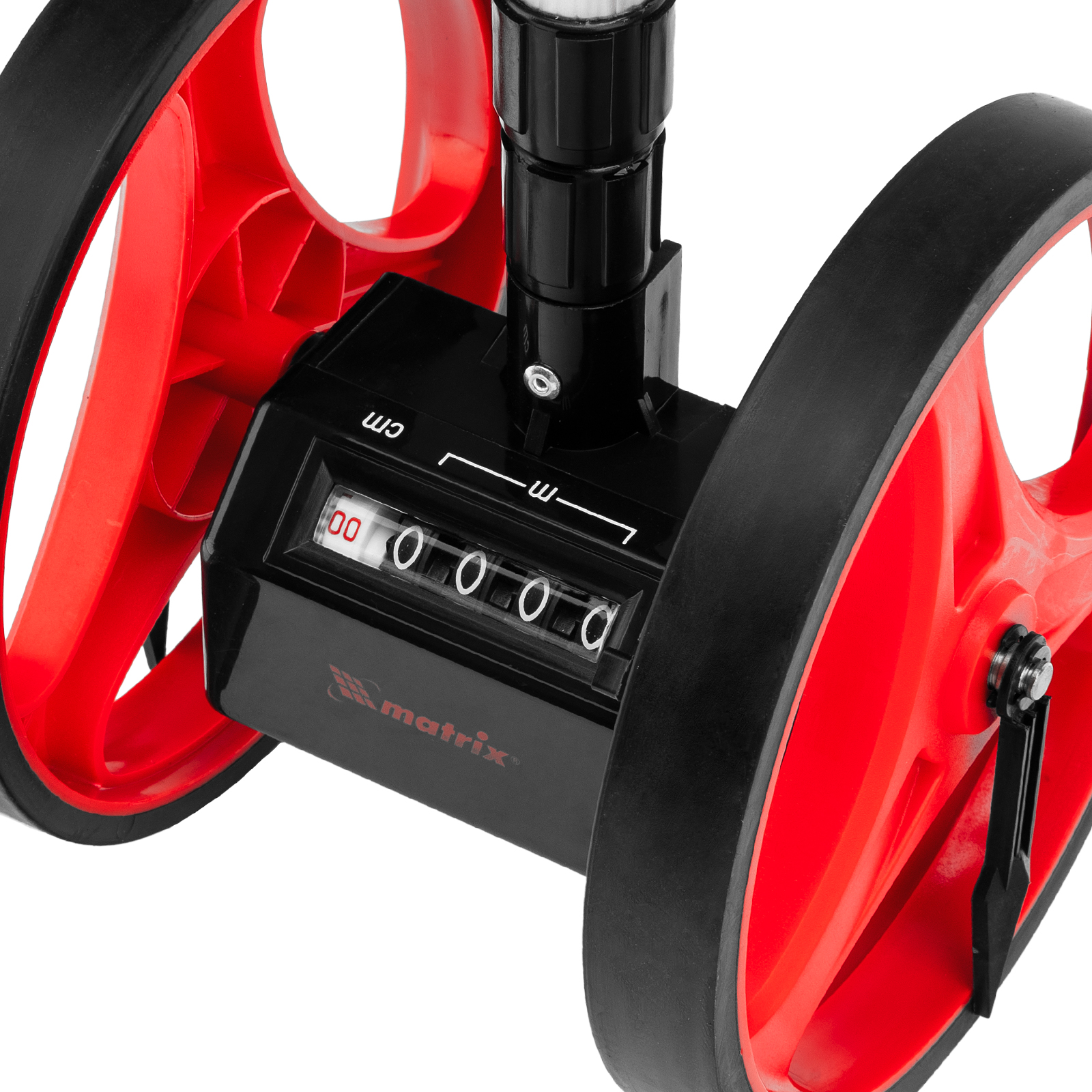 Измерительное механическое колесо (или курвиметр) Matrix 36001 предназначено для замера расстояний на местности. Снабжено удобным механическим счетчиком и кнопкой быстрого сброса показаний. Трехсекционная телескопическая рукоятка раздвигается до 925 мм, при этом общая высота инструмента составляет 1018 мм, поэтому колесо подходит пользователю любого роста. Прибор необходим при проведении дорожных и парковых работ, а также для обмера земельных участков и строящихся объектов, мест ДТП.