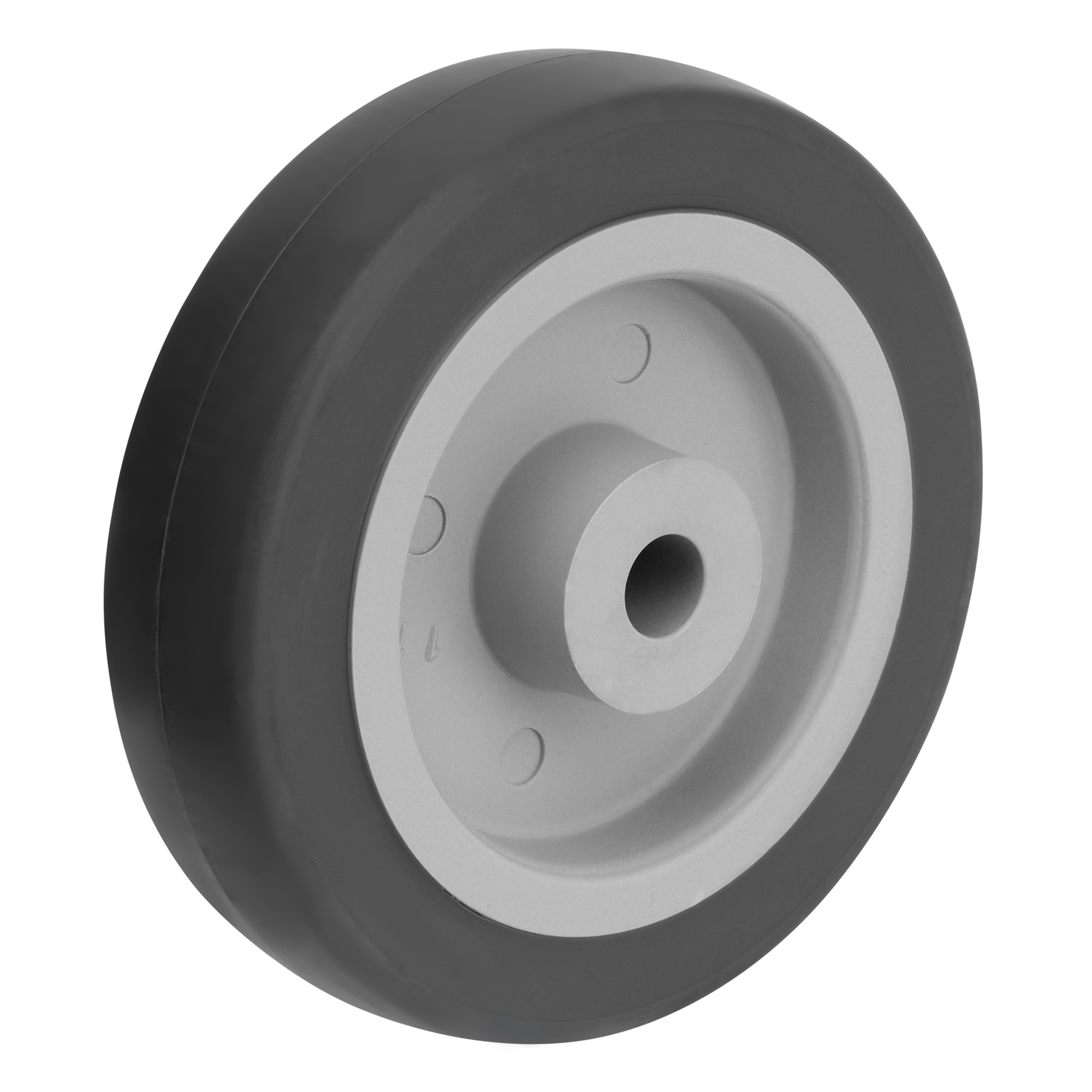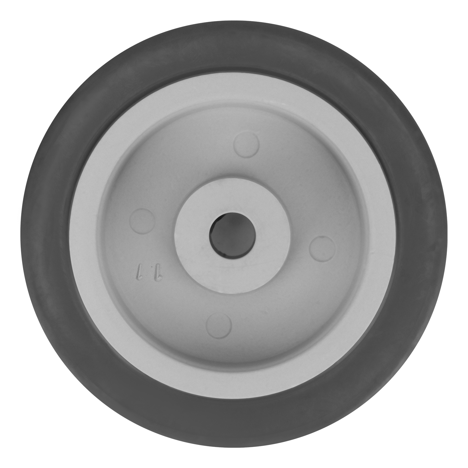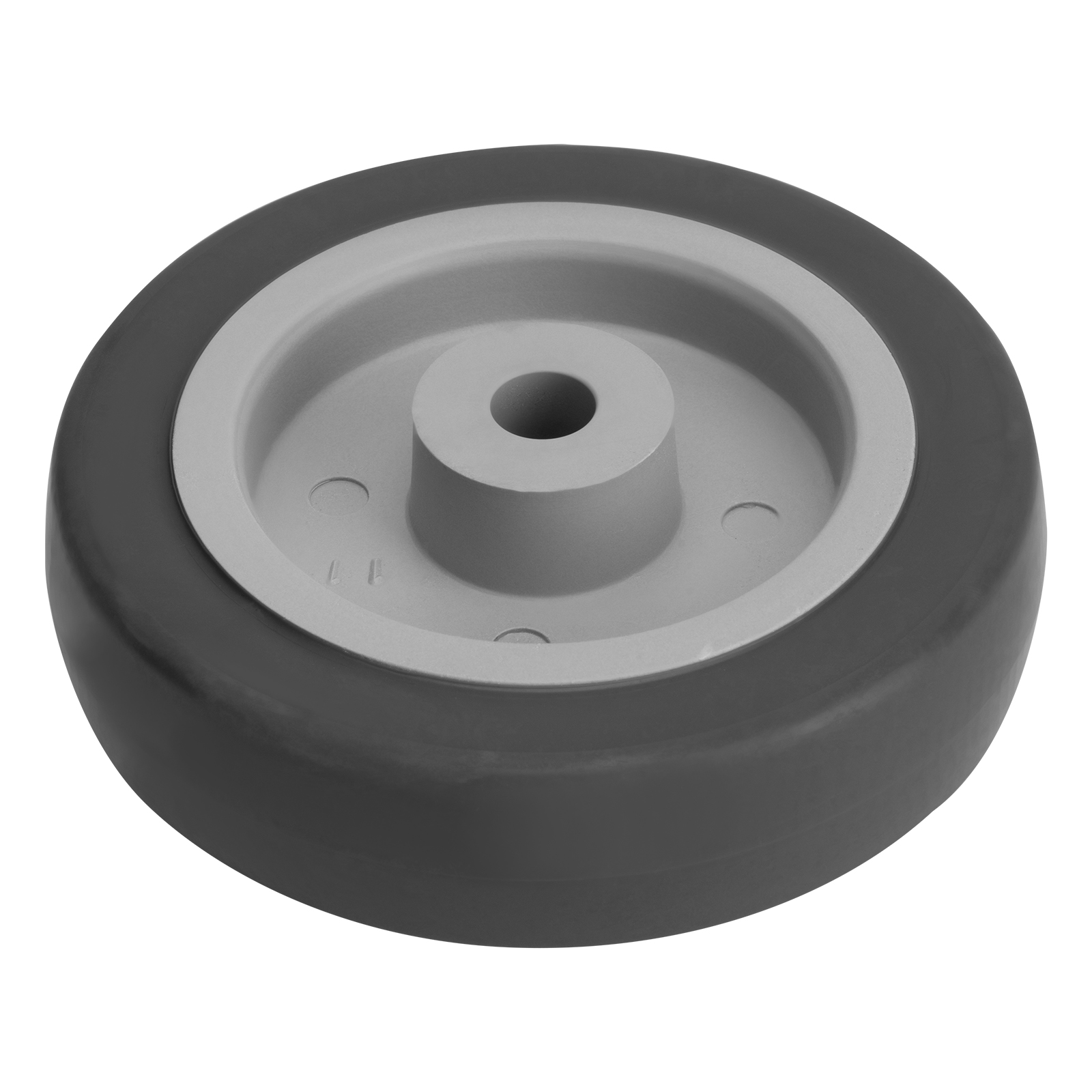 • Универсальность — контактная поверхность выполнена из термопластичной серой резины, поэтому колесо может применяться на различных покрытиях, долгое время сохраняя рабочие качества.