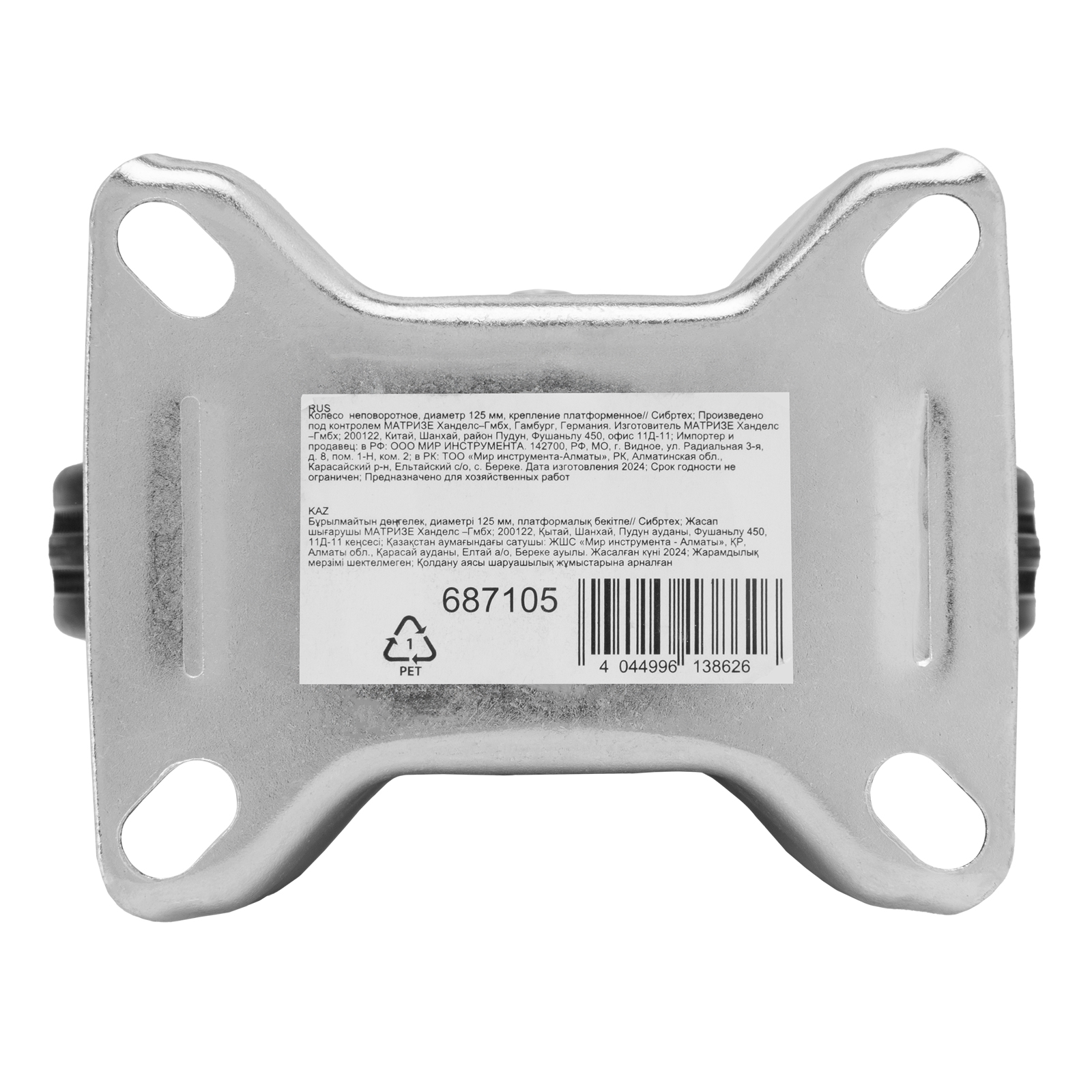 Колесо неповоротное D 125 мм, крепление платформенное Сибртех