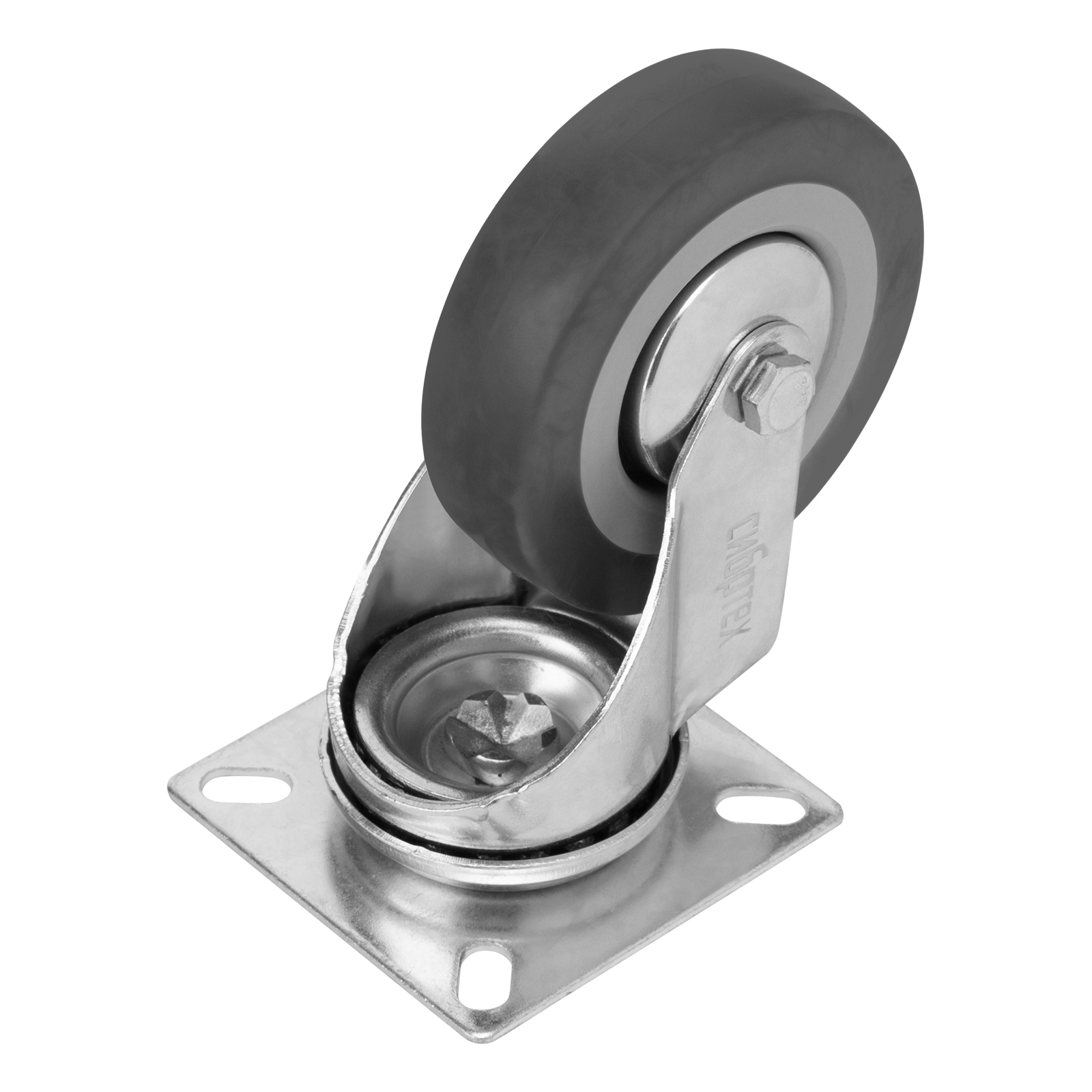 Колесо поворотное Сибртех 68714 диаметром 75 мм, с платформенным креплением, имеет грузоподъемность 50 кг и устанавливается на ручные промышленные тележки. Выдерживает температуру от -25 до +50 °C, устойчиво к воздействию ультрафиолета и влаги, поэтому подходит для эксплуатации как внутри помещения, так и снаружи. Поворотный механизм и подшипник облегчают маневрирование. Колесо используется для перемещения грузов на производстве или на складах.