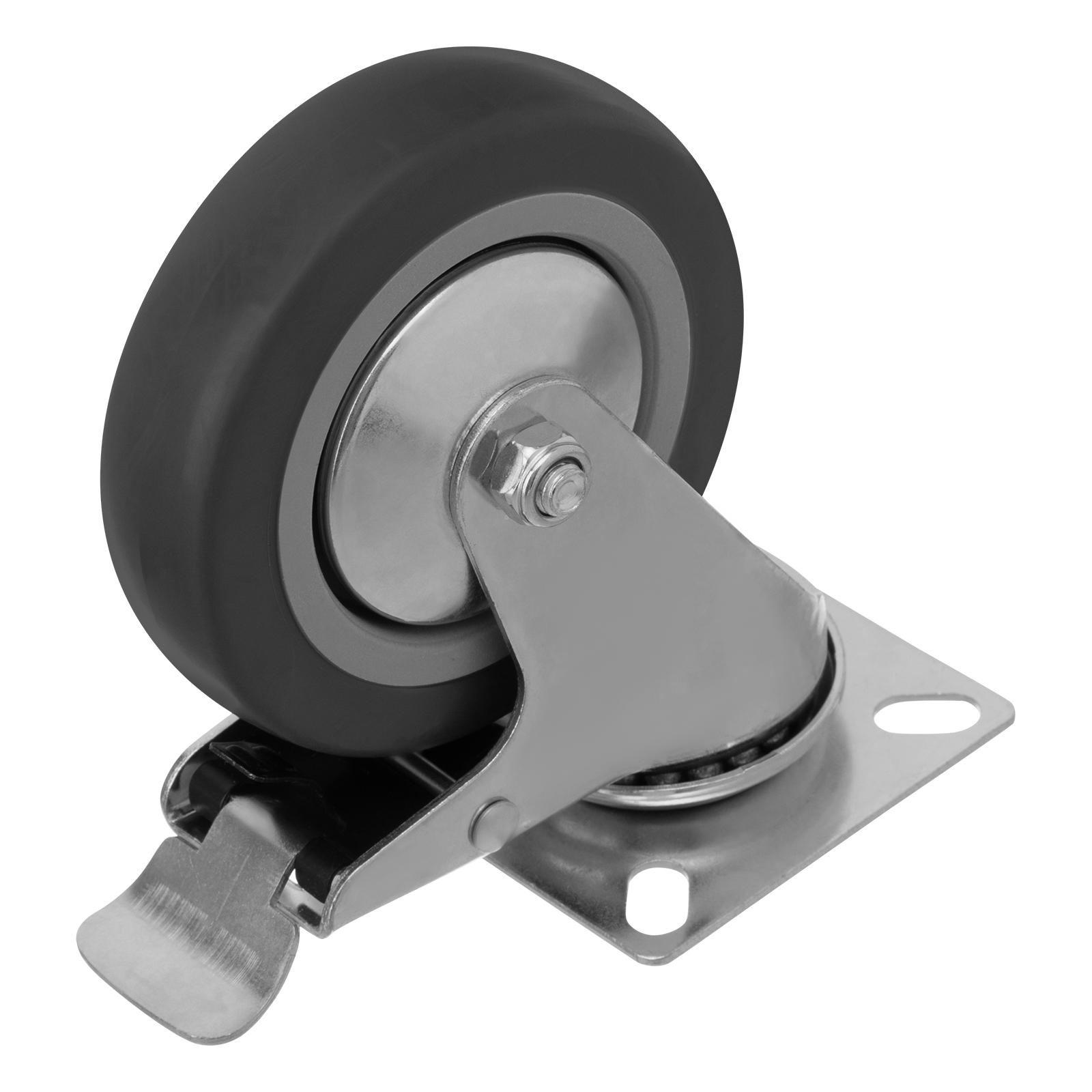 • Комфортная эксплуатация — колесо легко вращается, резиновая шина гасит вибрации, не издает шума и не царапает поверхность.