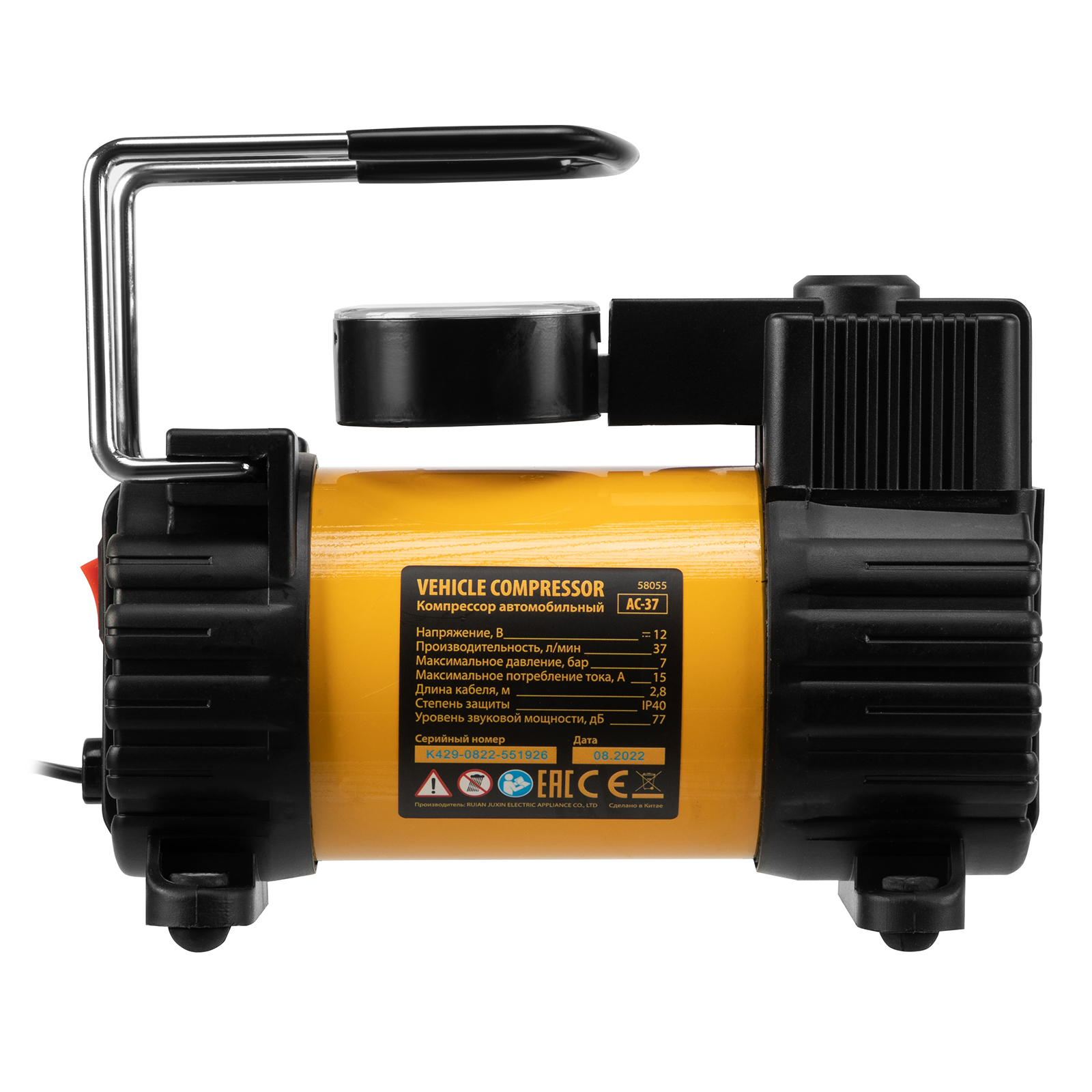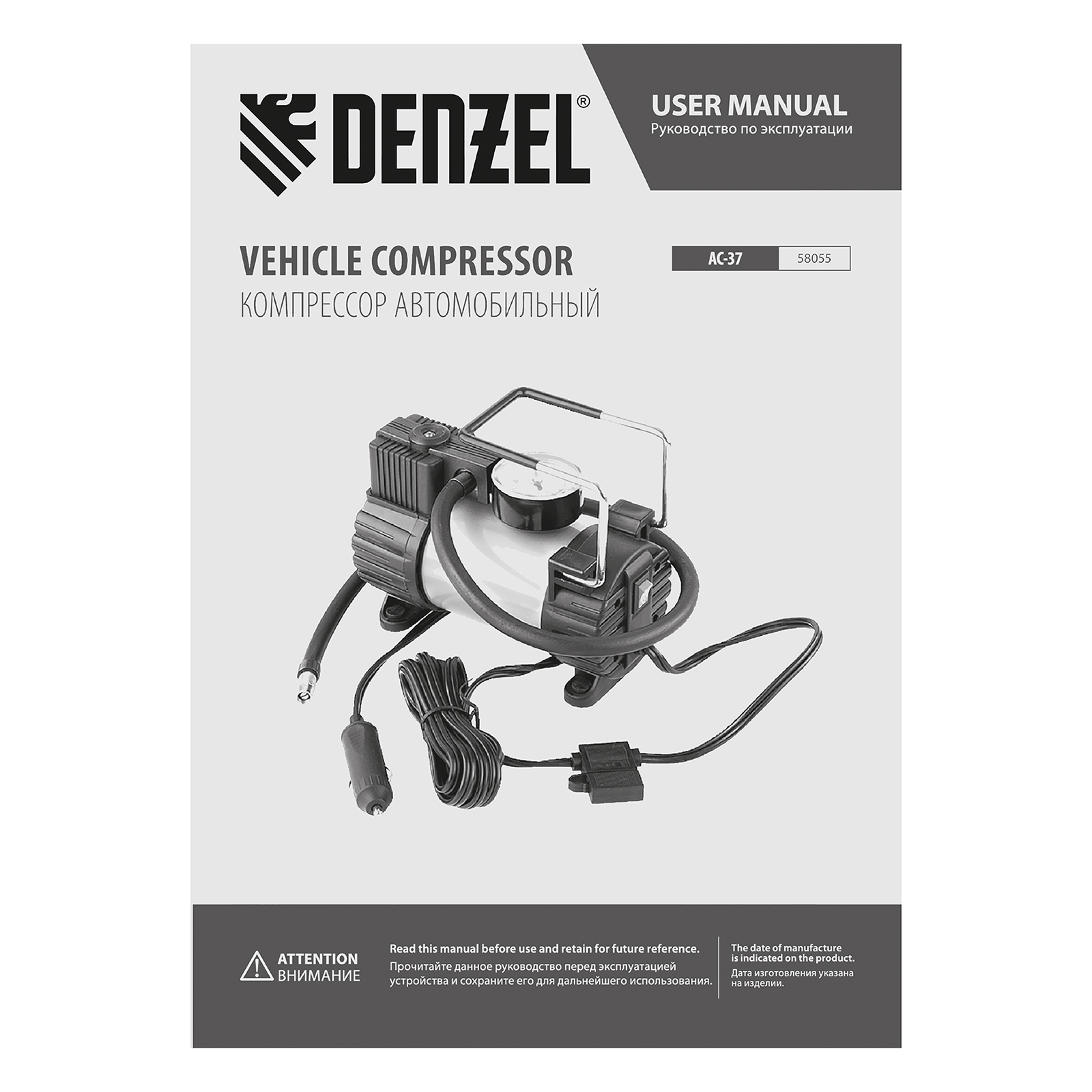 Компрессор автомобильный AC-37, 12 В, 7 атм, 37 л/мин, автомобильный предохранитель Denzel