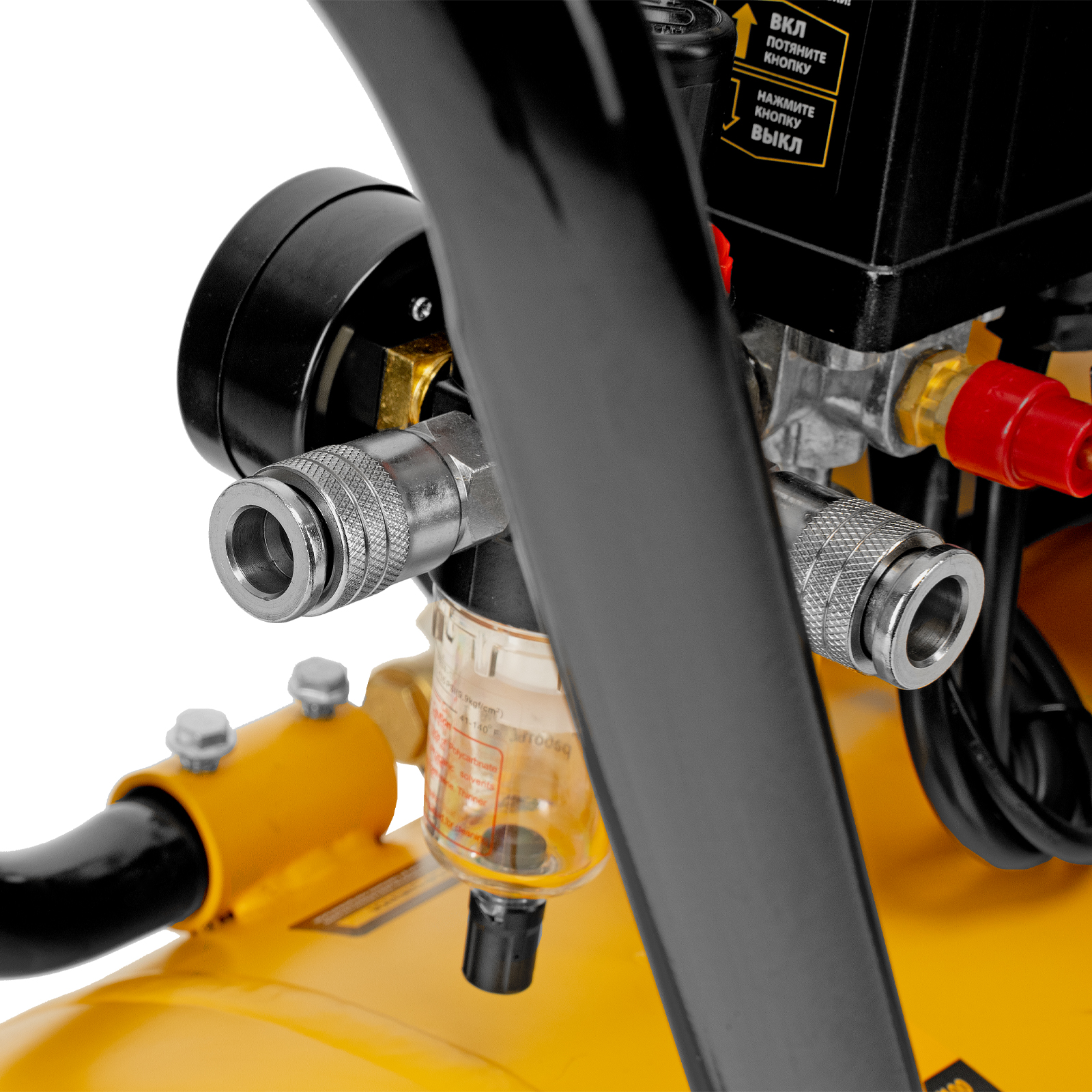- Высокое качество очистки воздуха — фильтры надежно задерживают посторонние частицы, а влагоотделитель препятствует попаданию конденсата в пневмомагистраль.