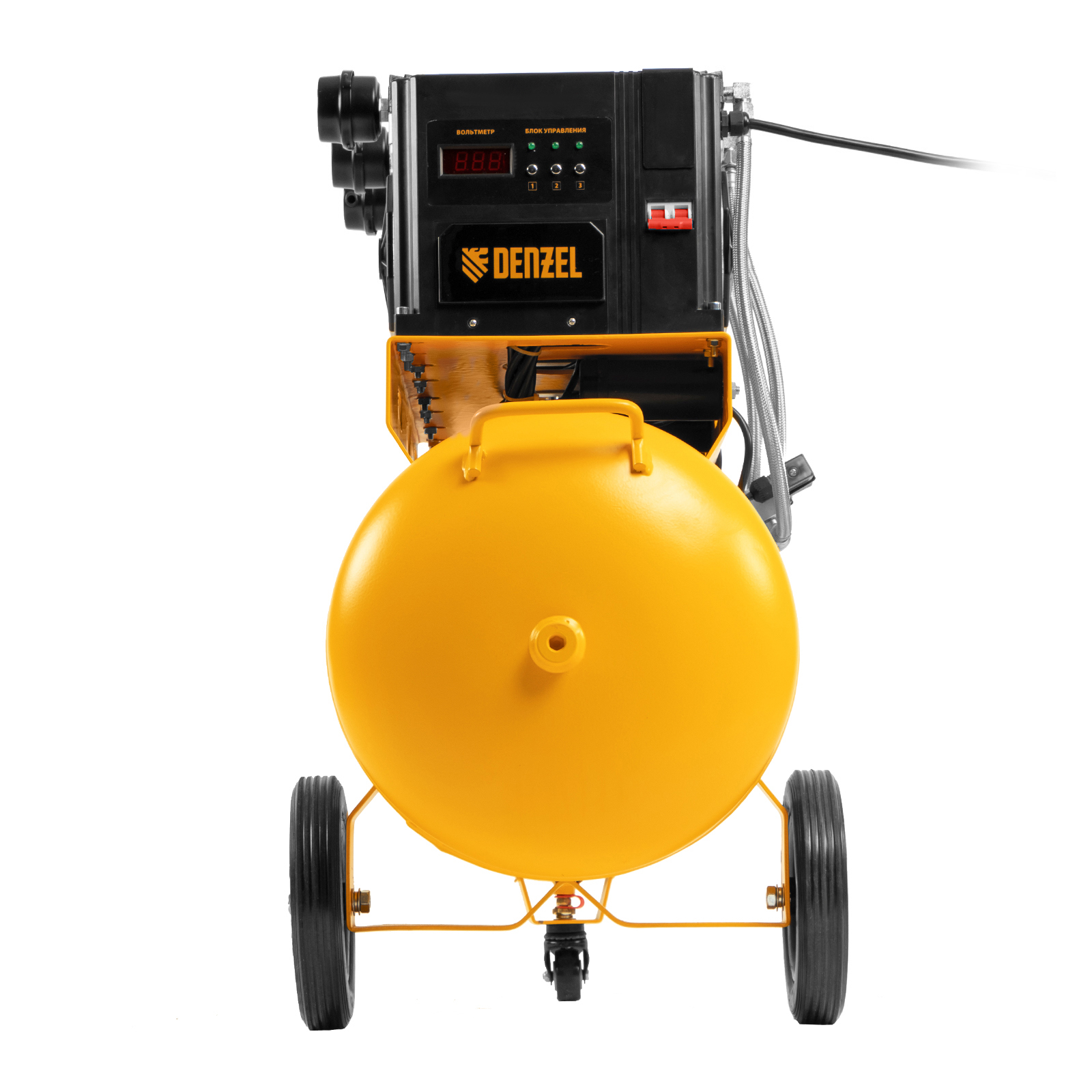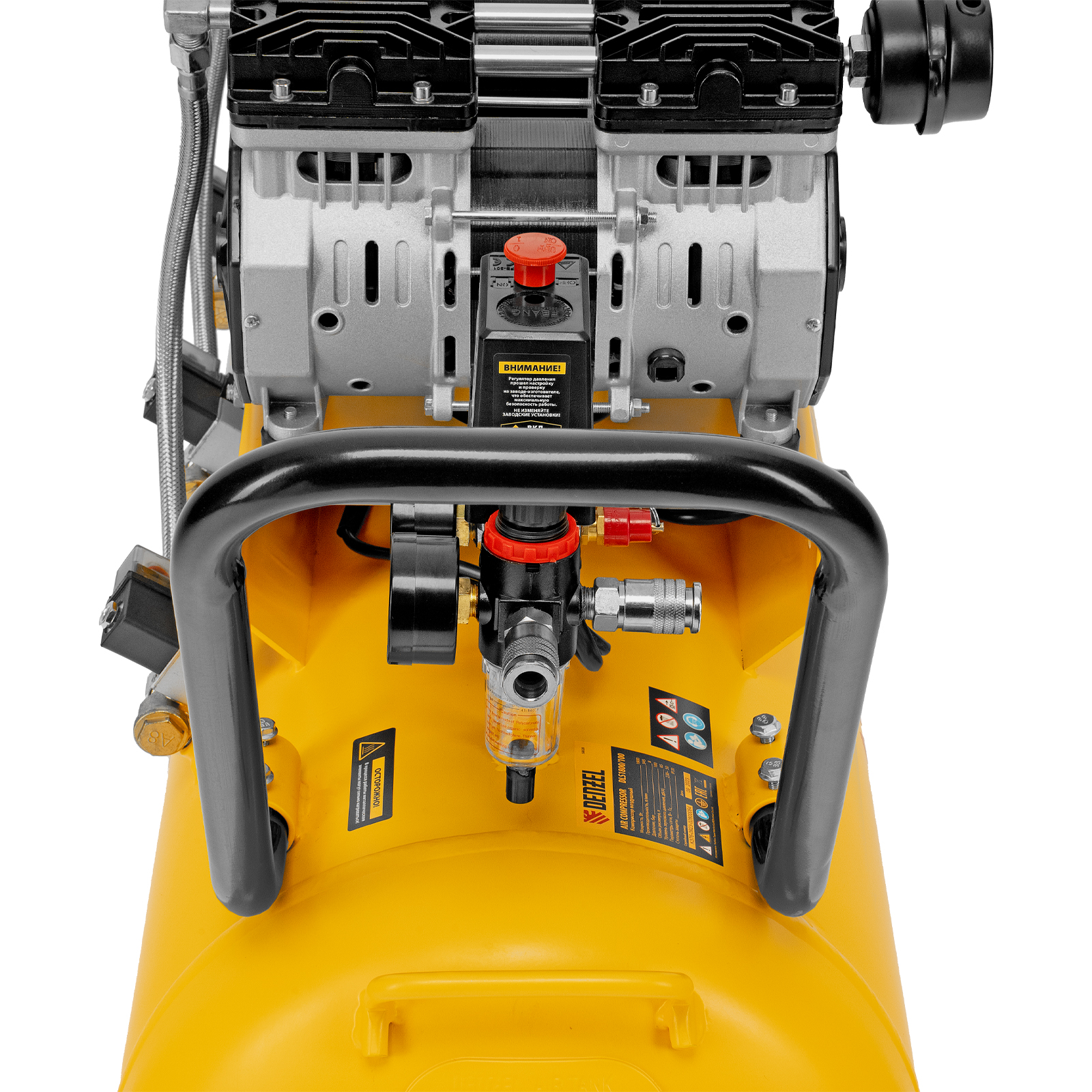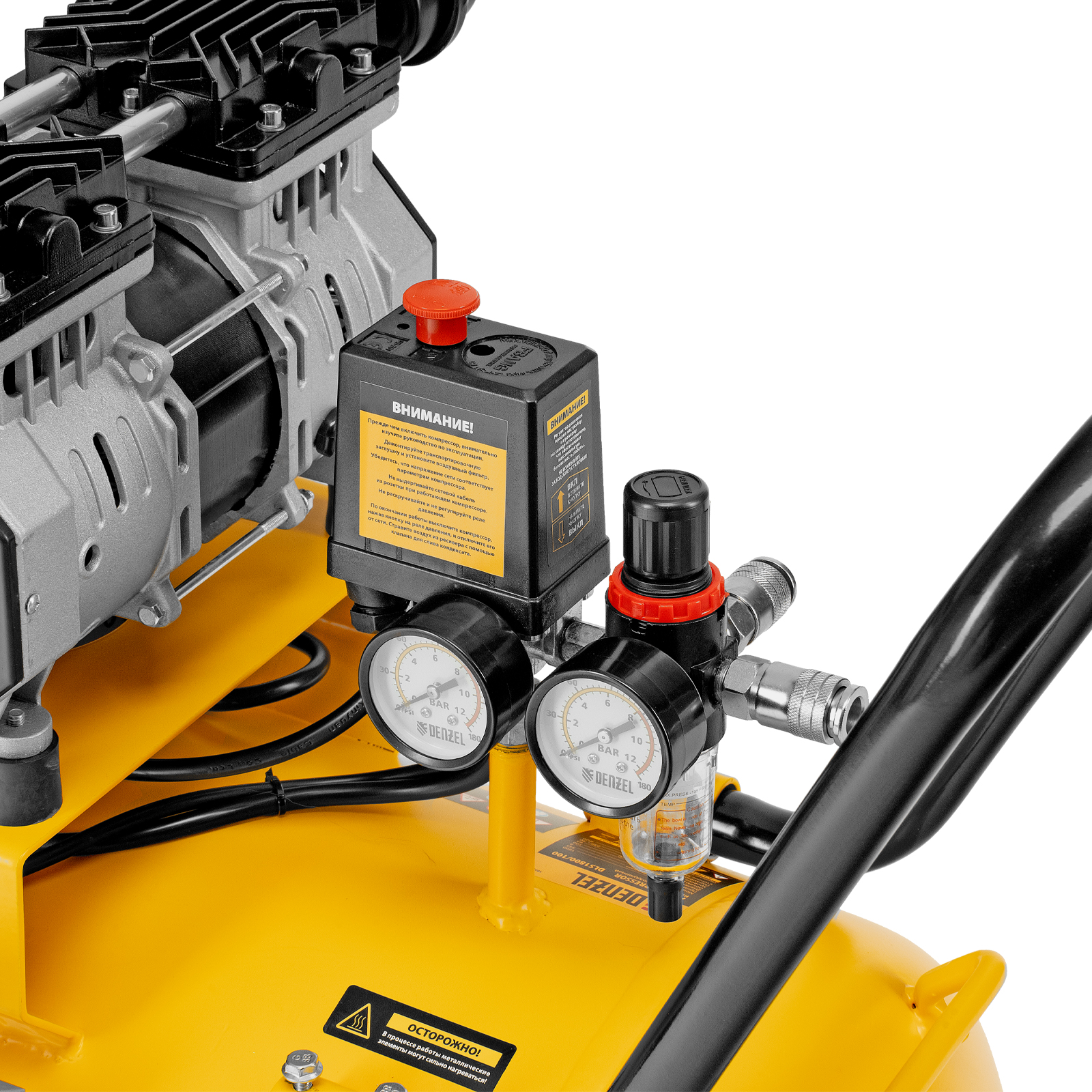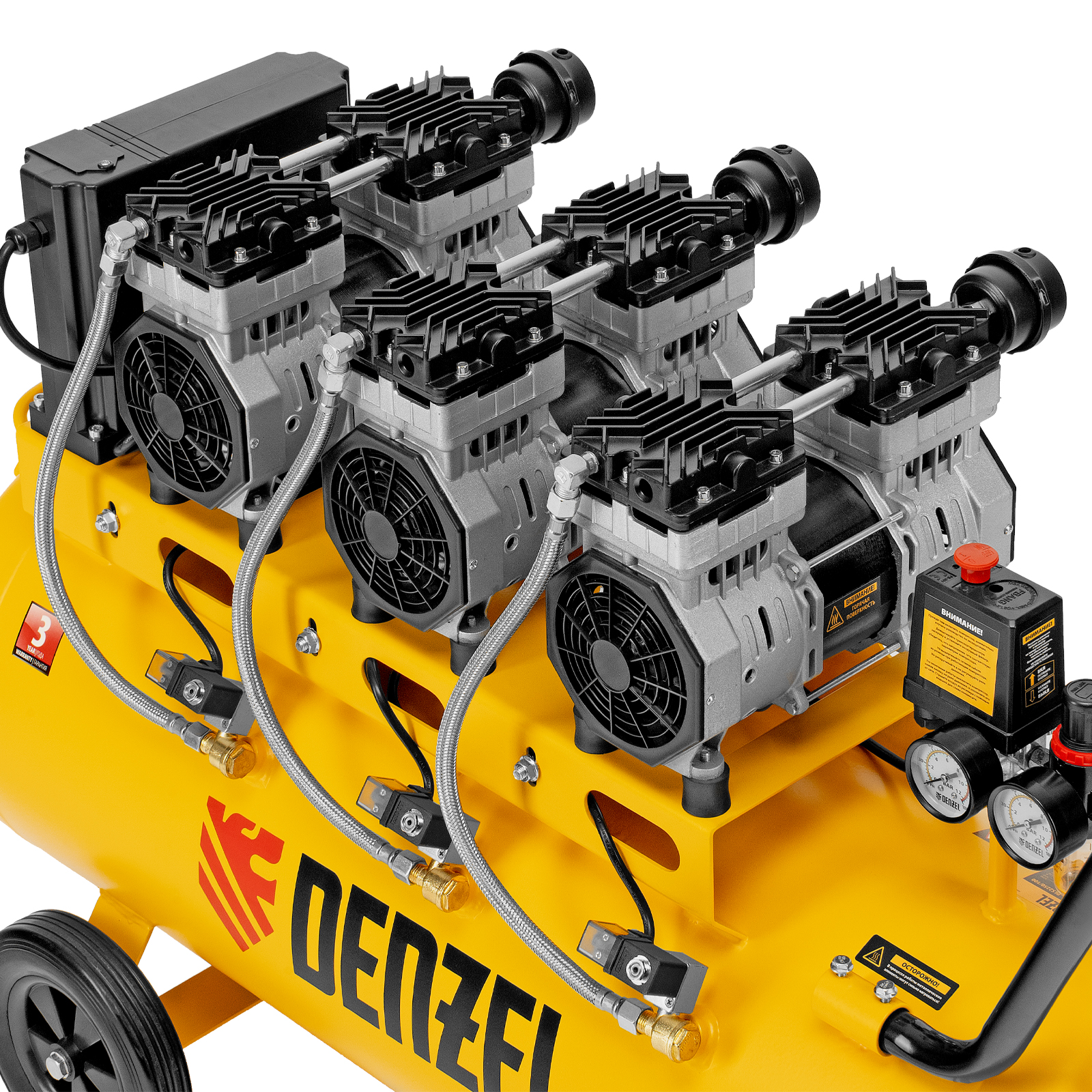 Компрессор безмасляный, малошумный DLS 2250/100, 2250 Вт, 3x750, 100 л, 410 л/мин блок управления/ Denzel