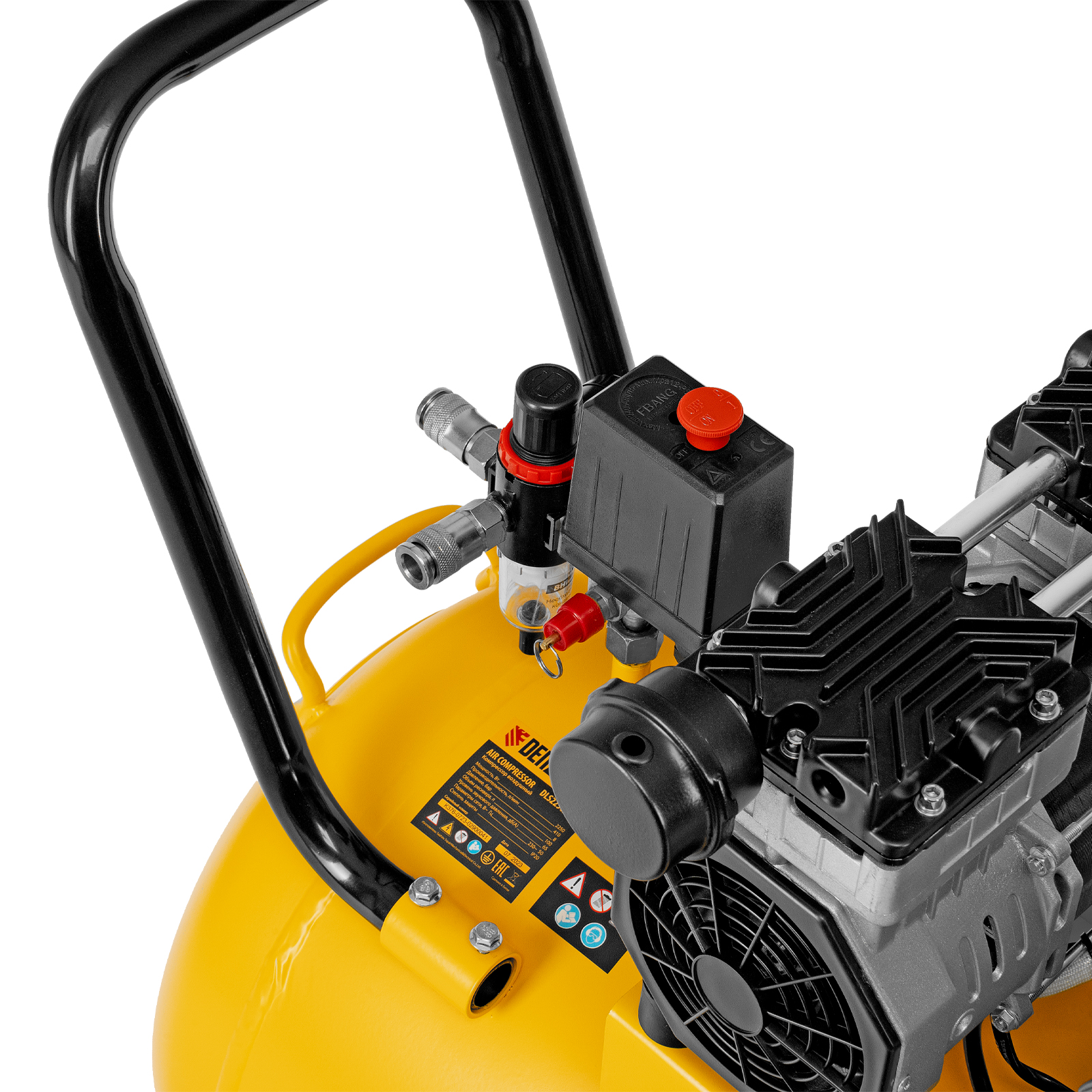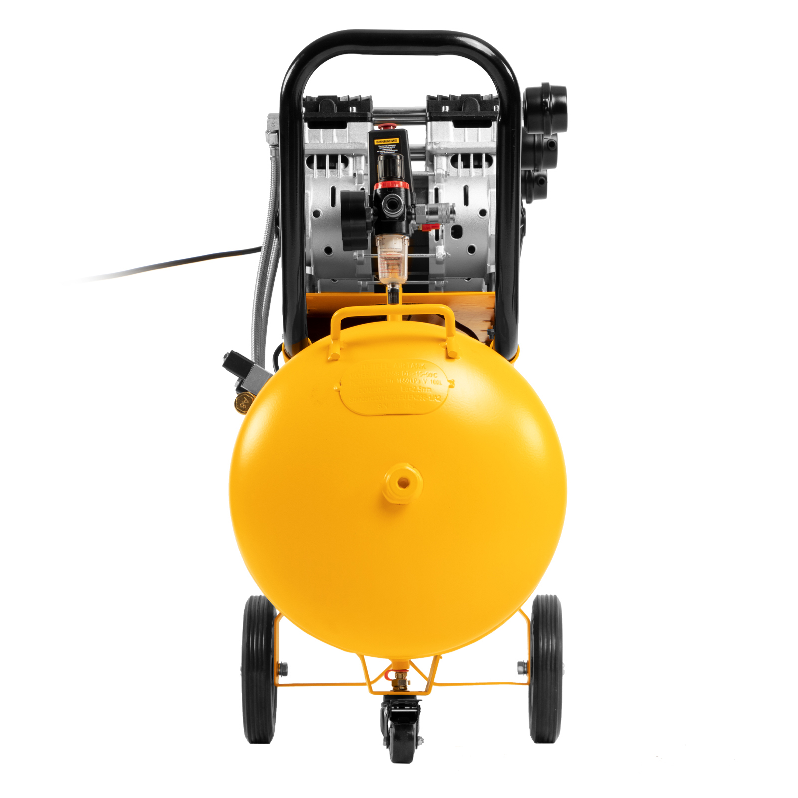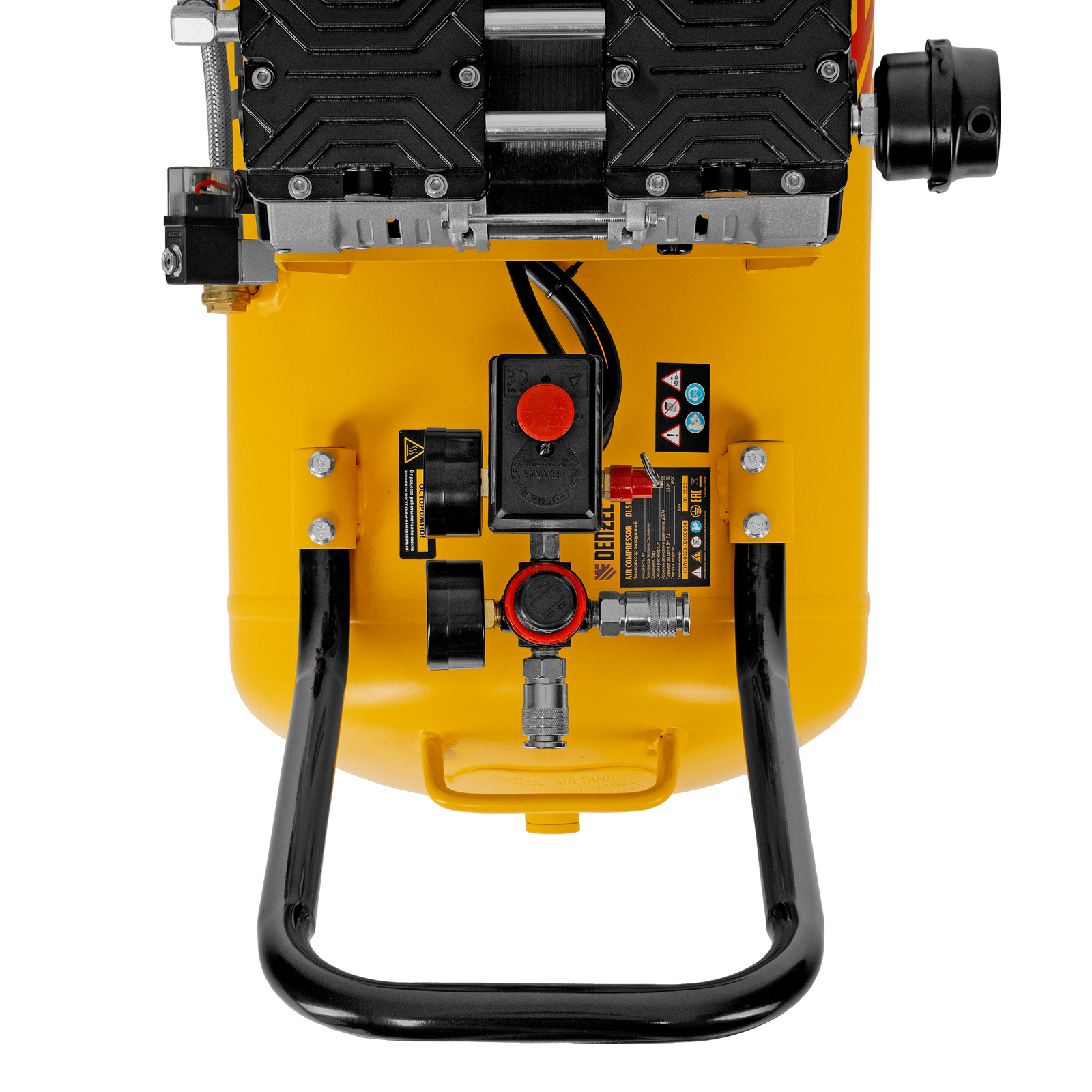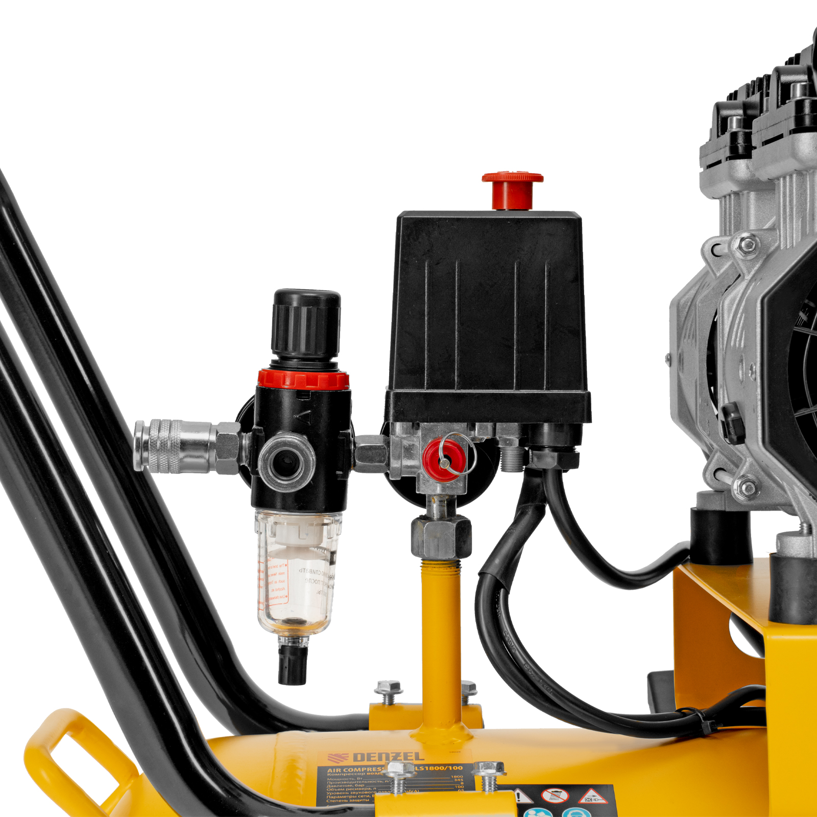 Компрессор безмасляный, малошумный DLS 2250/100, 2250 Вт, 3x750, 100 л, 410 л/мин блок управления/ Denzel