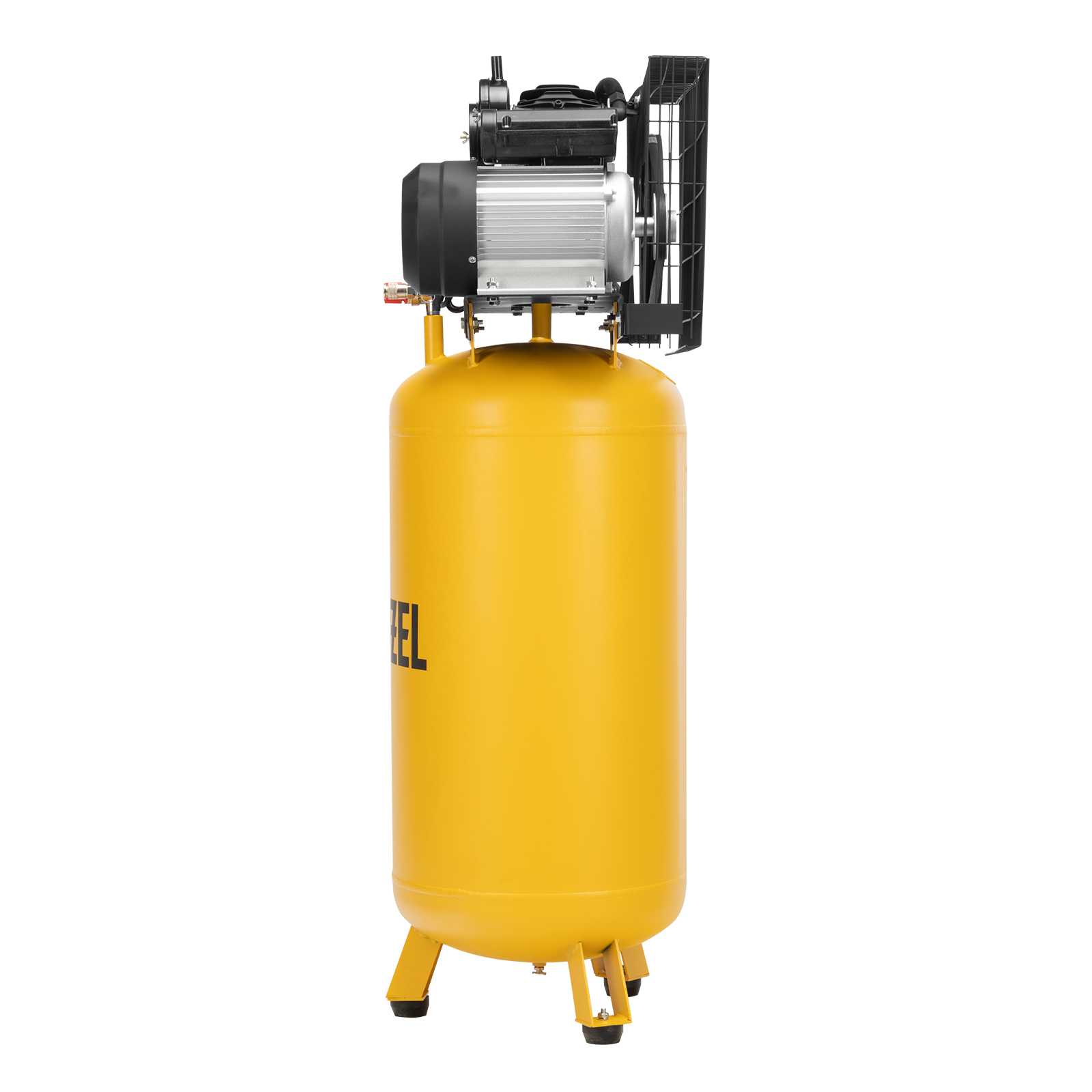 Компрессор воздушный с ременным приводом Denzel BCV2200/100V 58112 мощностью 2,3 кВт, с ресивером объемом 100 л используется для обеспечения сжатым воздухом таких инструментов, как краскораспылитель, гайковерт, гвоздезабивной пистолет, дрель, пистолет для накачки шин и пр. Высокая производительность 440 л/мин позволяет использовать его не только в загородных домах и гаражах, но и на фабриках, станциях технического обслуживания автомобилей, в различных мастерских.,Сжатый воздух накапливается в ресивере объемом 100 литров. Он располагается вертикально, что позволяет сэкономить место на рабочей площадке. Для устойчивости компрессор крепится к стене или полу.