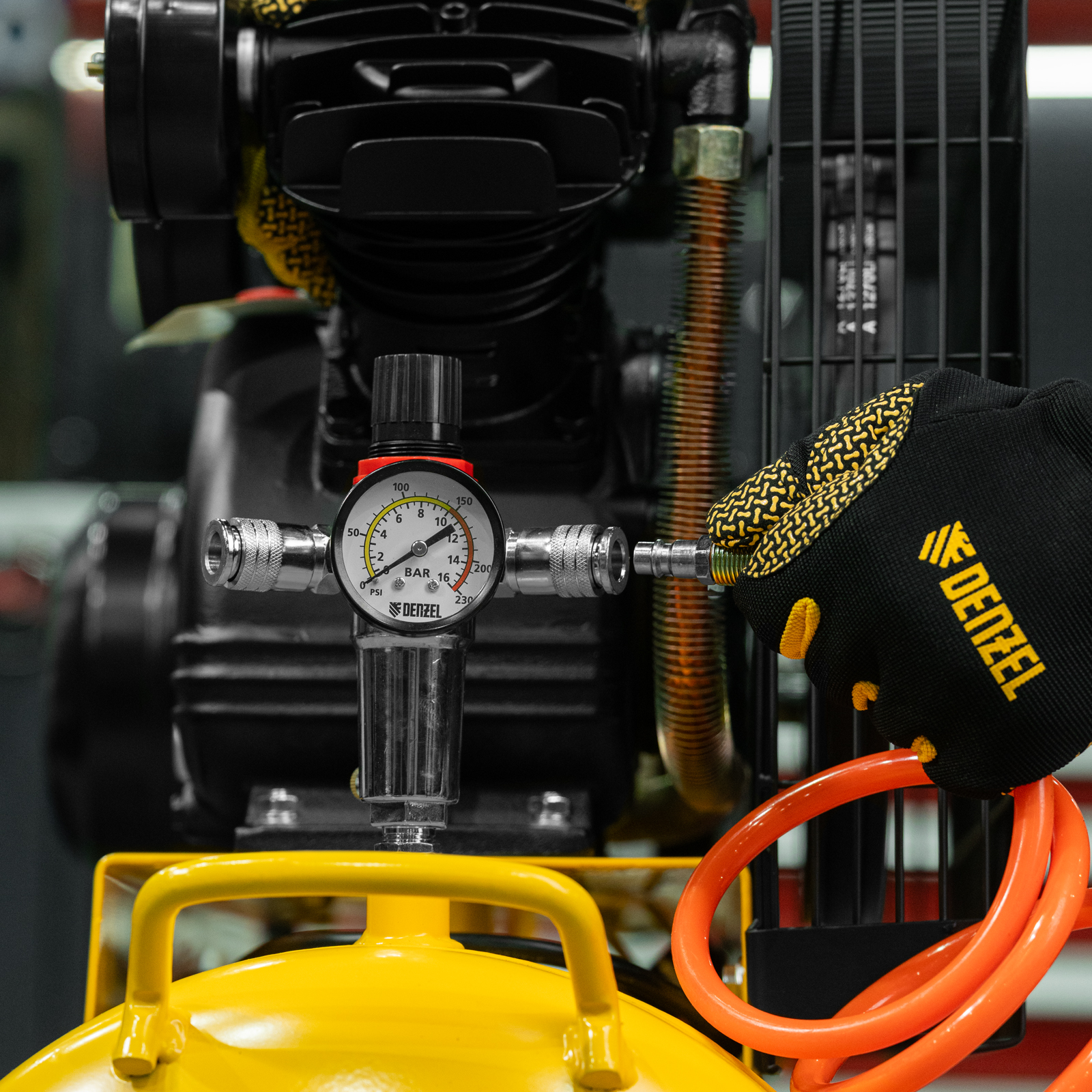 Компрессор воздушный BCV2300/100, ременный привод, 2.3 кВт, 100 литров, 440 л/мин Denzel