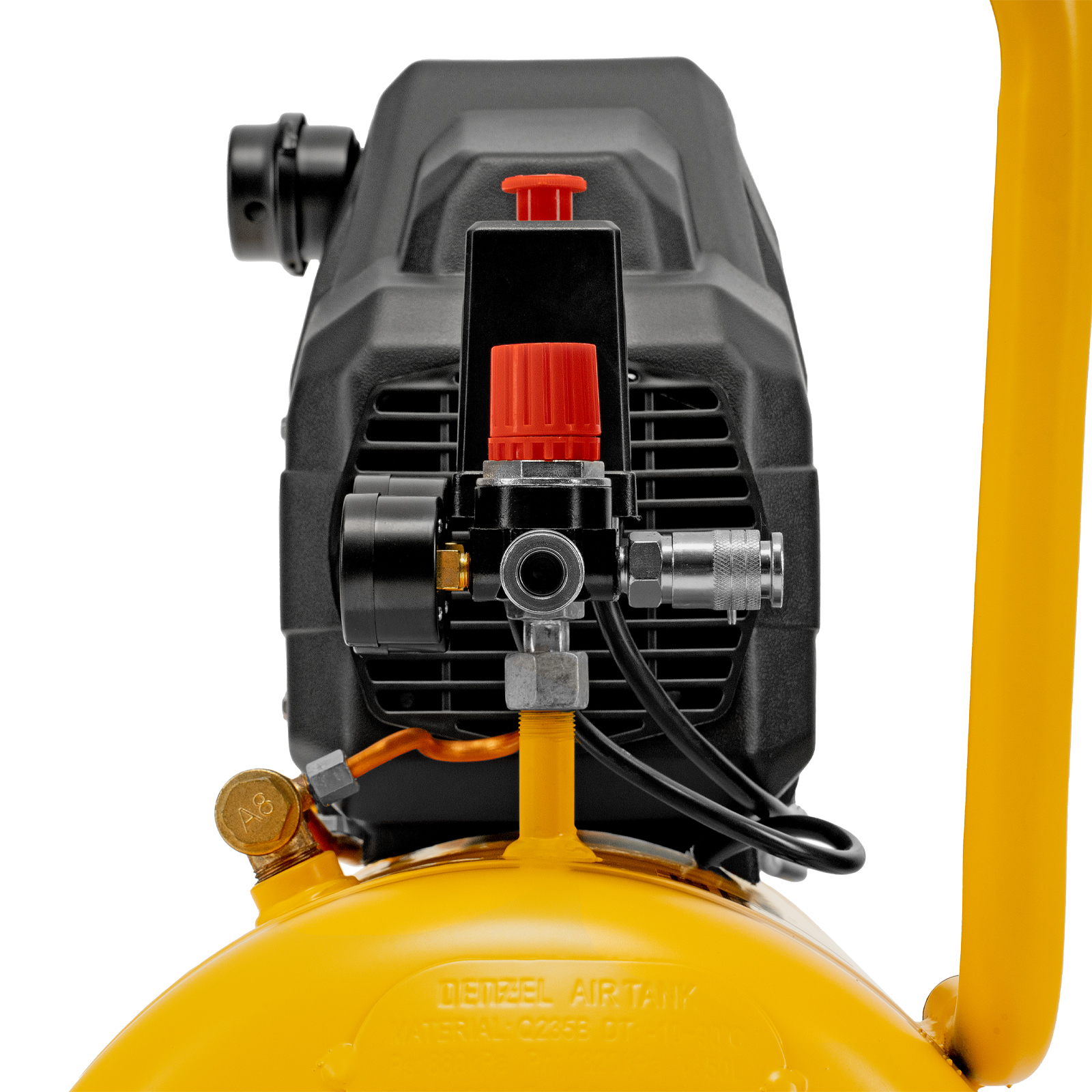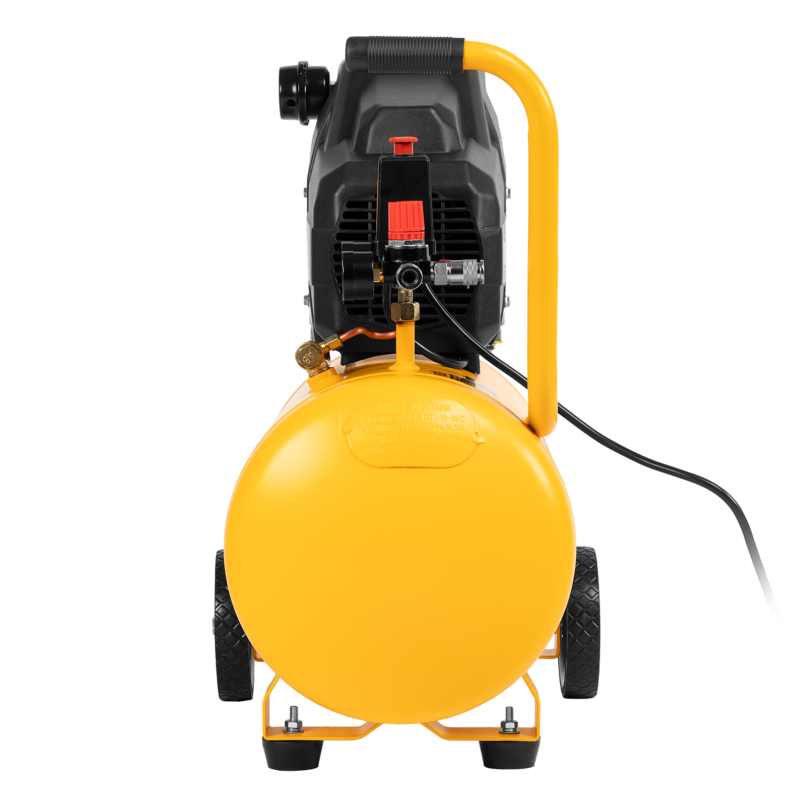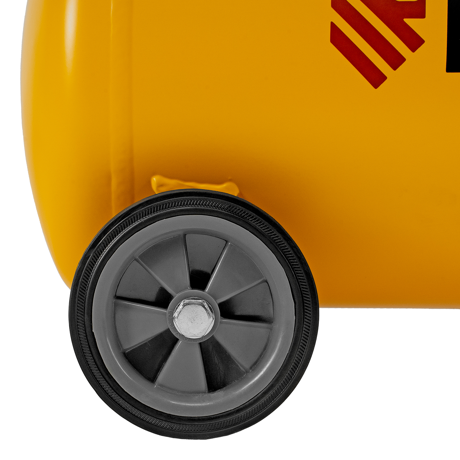 - Мобильность — транспортировочные колеса позволяют легко перемещать компрессор по рабочей площадке.