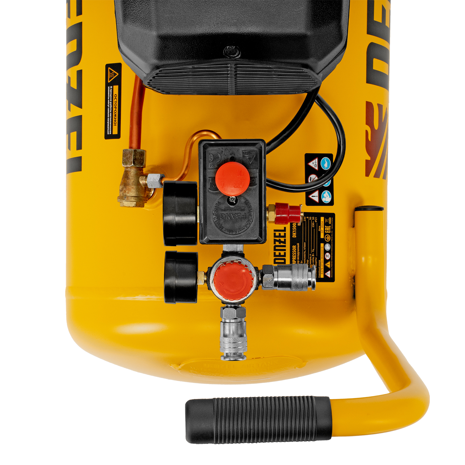 Воздушный компрессор Denzel Х-PRO DK1500/50 58064 мощностью 1,5 кВт, производительностью 230 л/мин, имеет ресивер объемом 50 л и подходит для бытового использования. Обеспечивает подачу воздуха к различным пневматическим инструментам: шуруповерту, краскопульту и др. Будет незаменим в гараже, когда надо подкачать колеса автомобиля или подкрасить его отдельные детали, а также на даче или в частной мастерской. Несмотря на простоту конструкции, компрессор имеет хорошую производительность и возможность подключения сразу нескольких инструментов.