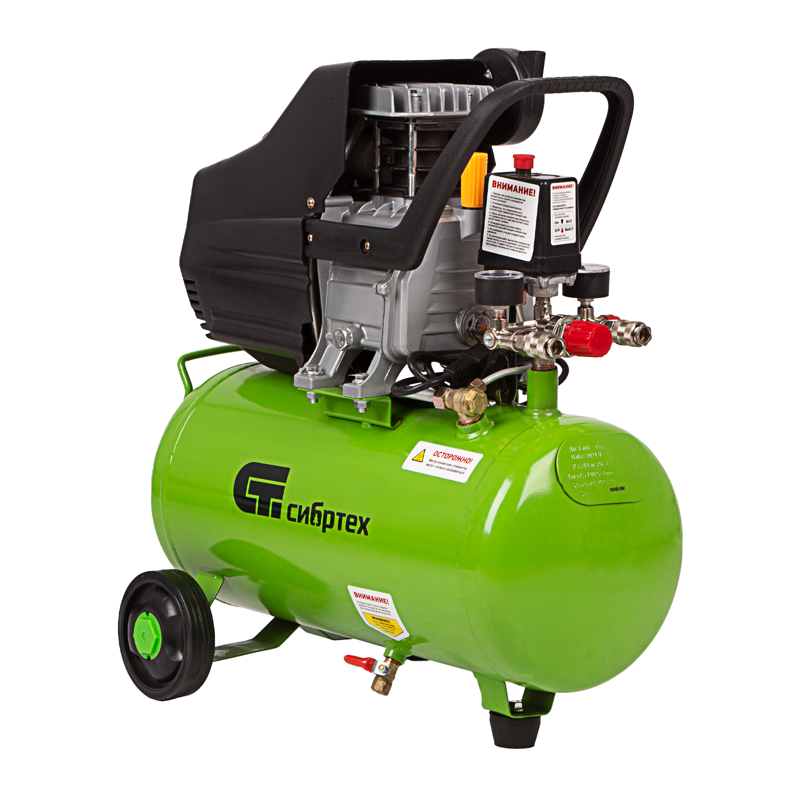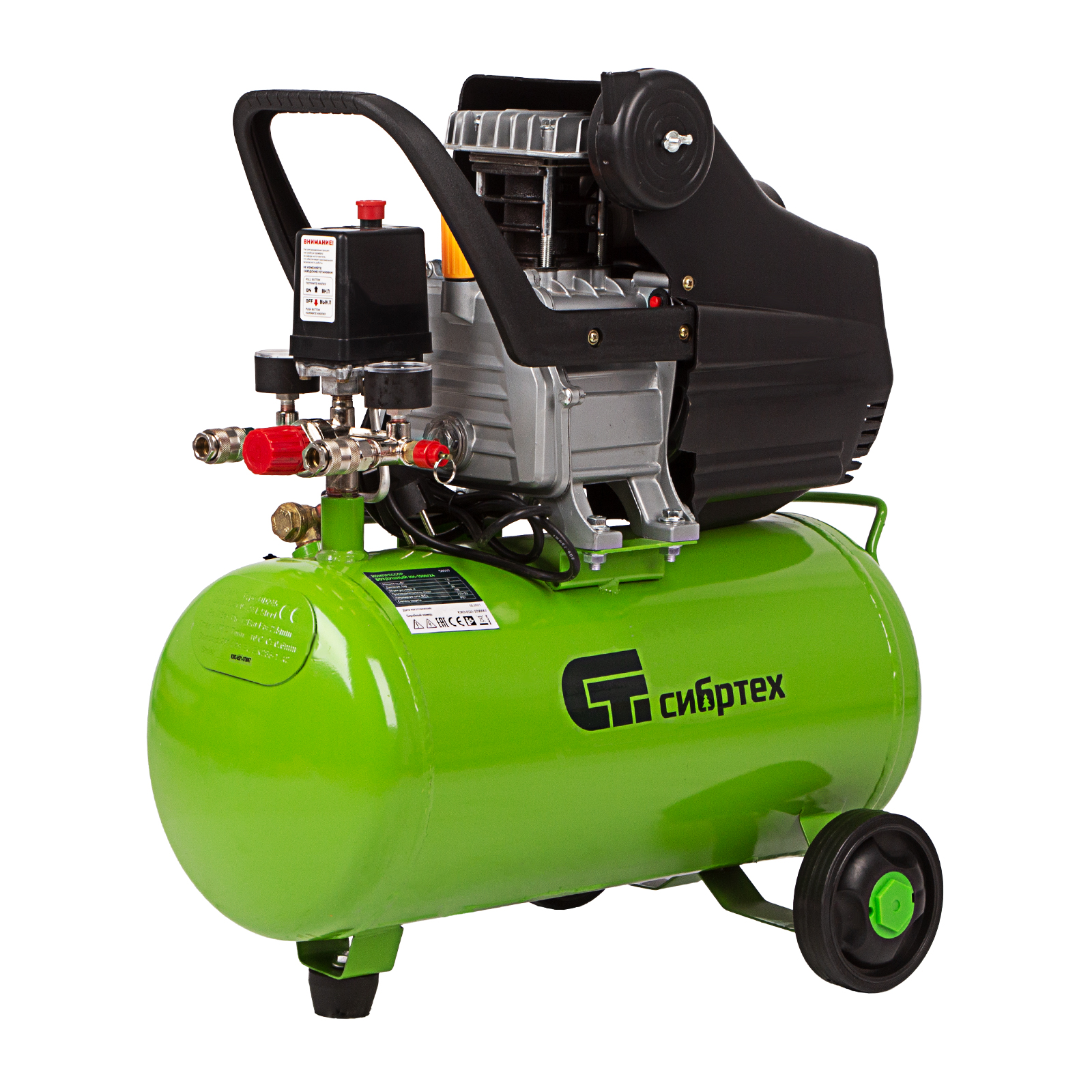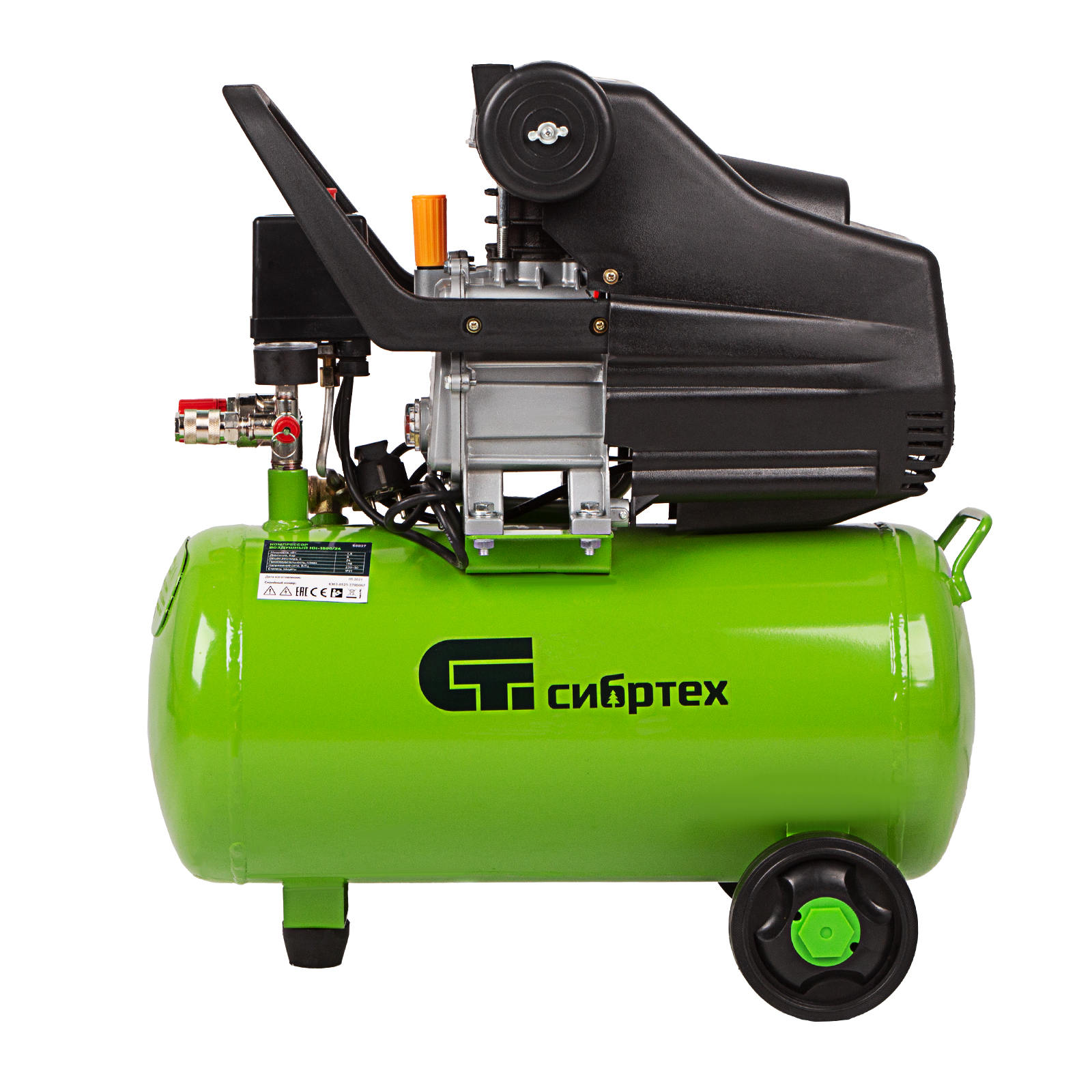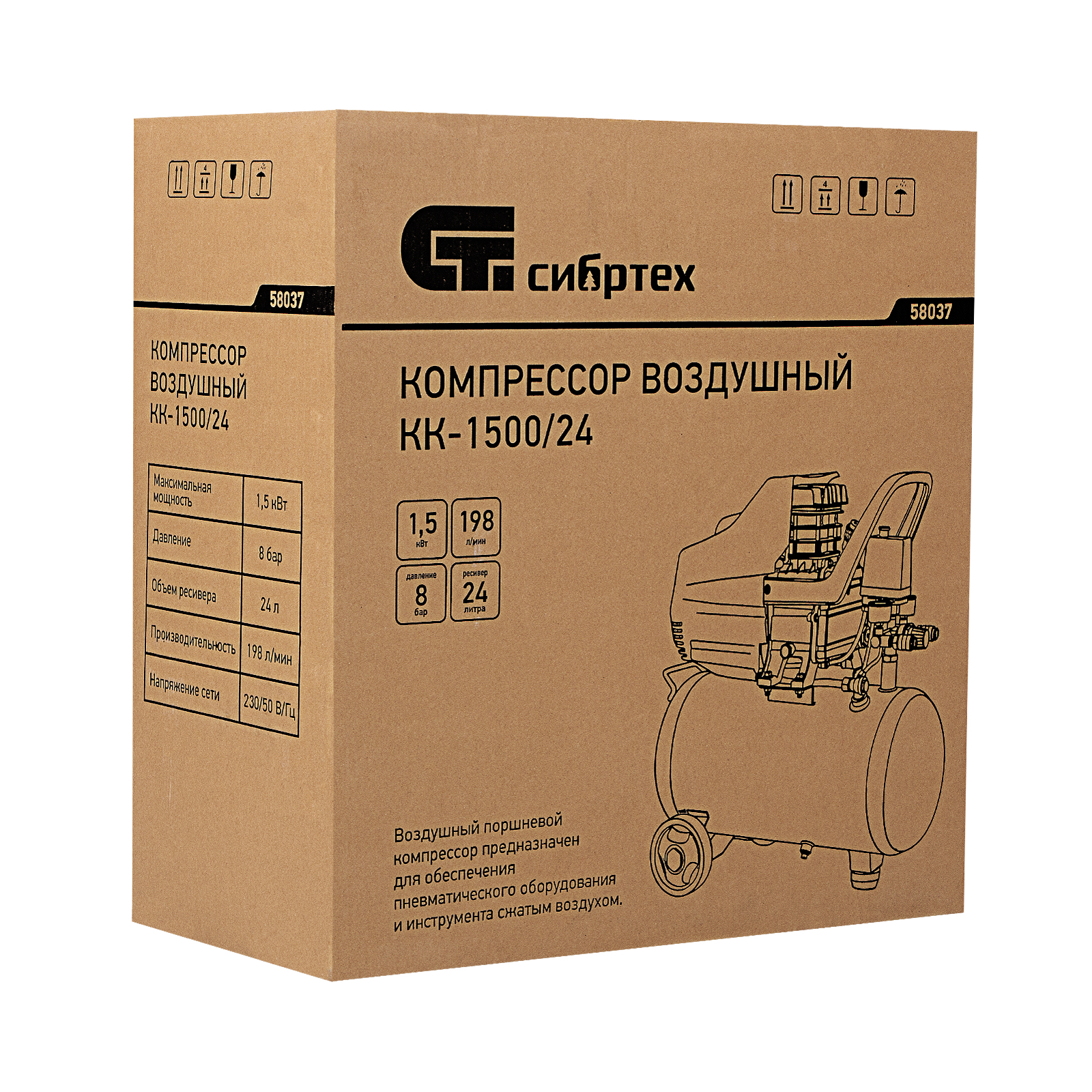 Компрессор воздушный КК-1500/24, 1.5 кВт, 198 л/мин, 24 л, прямой привод, масляный Сибртех