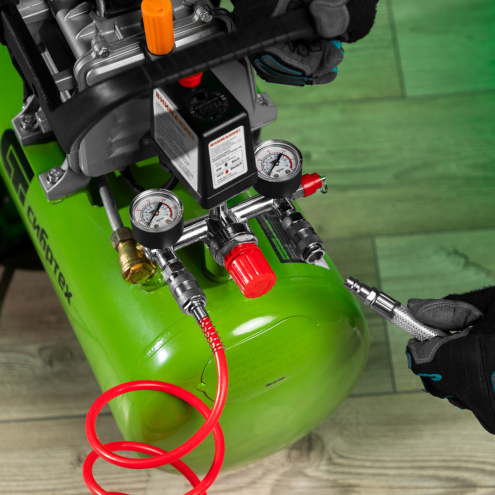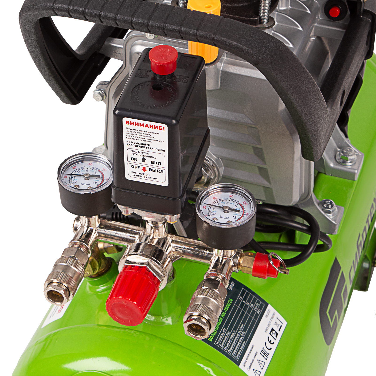 - Удобное расположение манометров — не надо приседать, чтобы отследить уровень давления, показатели быстро считываются, даже если оператор стоит.