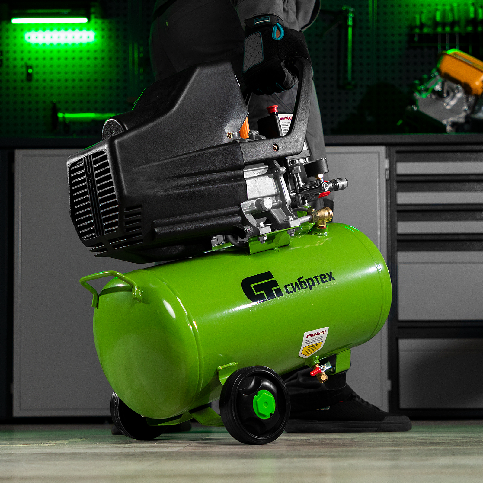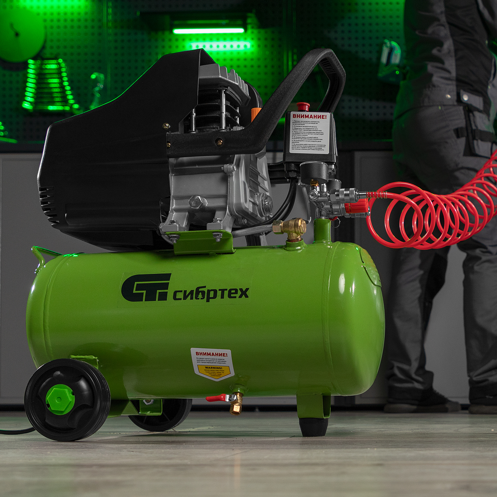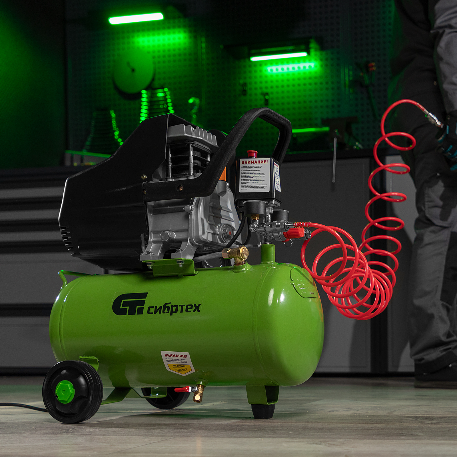 Компрессор предназначен для продувочных и ремонтных работ, подкачки шин на небольших производствах, автосервисах, гаражах и в домашних условиях. Сжатый воздух накапливается в компактном ресивере на 24 л, затем поступает к пневматическому инструменту: шуруповерту, степлеру и др.,Несмотря на небольшой вес, компрессор оснащен мощным двигателем, способным обеспечить стабильно высокую производительность в 198 л/мин. Аккуратная и прочная фиксация обмотки двигателя, а также увеличенный размер магнитопровода статора дополнительно повышают надежность и ресурс изделия.