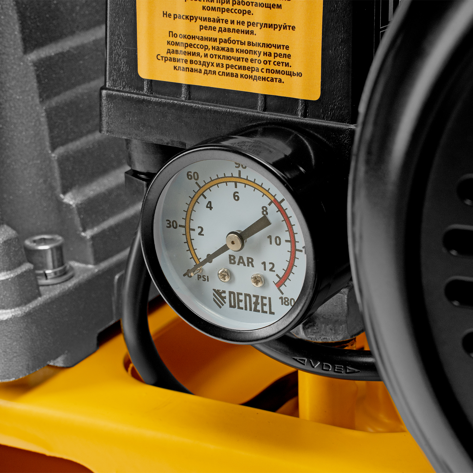 - Удобный контроль давления в ресивере и пневмомагистрали — компрессор оснащен двумя механическими манометрами.