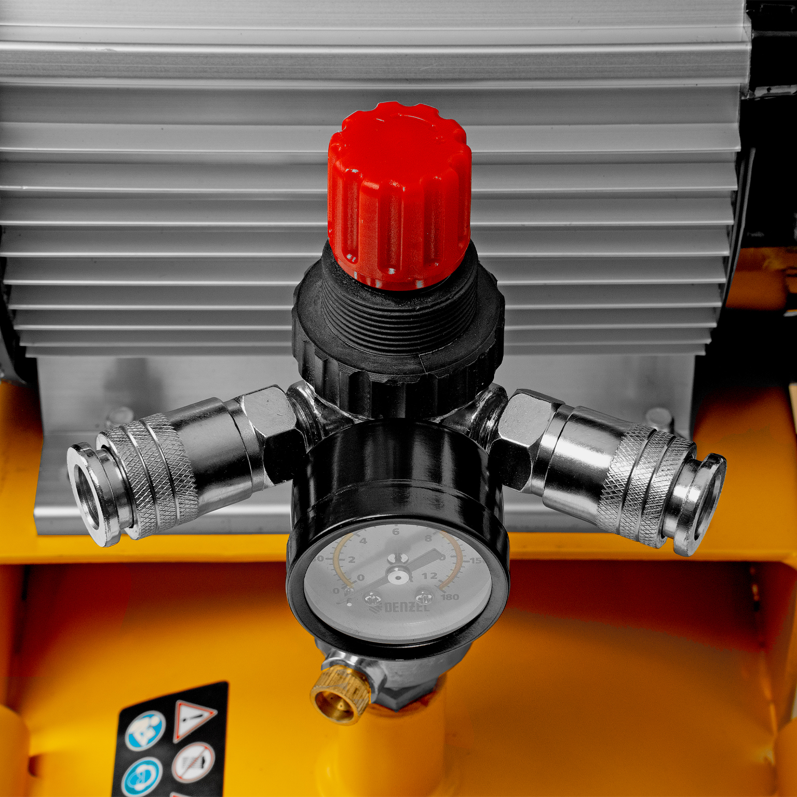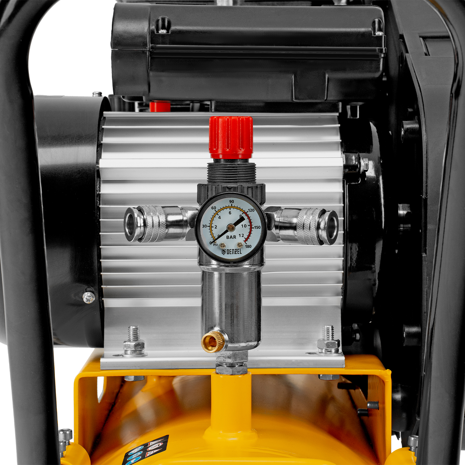 Воздушный компрессор Denzel BCI 2100/50 58115 с ременным приводом, мощностью 2,1 кВт и производительностью 400 л/мин, с ресивером объемом 50 л, — источник сжатого воздуха для работы с пневмоинструментом: пневмогайковертом, пневмодрелью, краскопультом, углошлифовальной машиной и т.д. Для подключения инструмента предусмотрено 2 быстросъемных коннектора Рапид (Евро). Специальный порт позволяет подключить напрямую дополнительный ресивер или пневмомагистраль. Компрессор будет полезен на строительной площадке и станции техобслуживания.
