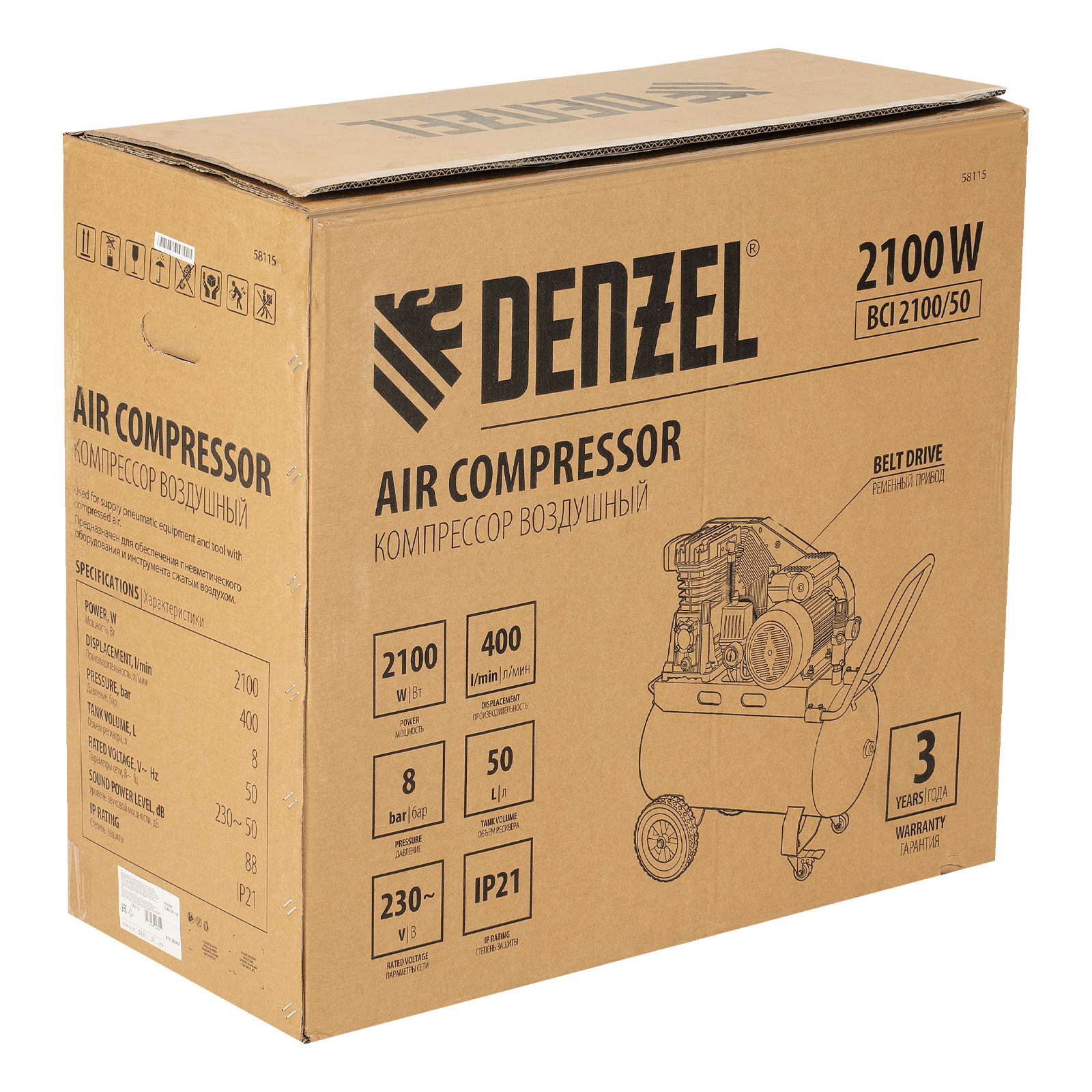 Компрессор воздушный рем. привод BCI 2100/50, 2,1 кВт, 50 литров, 400 л/мин Denzel