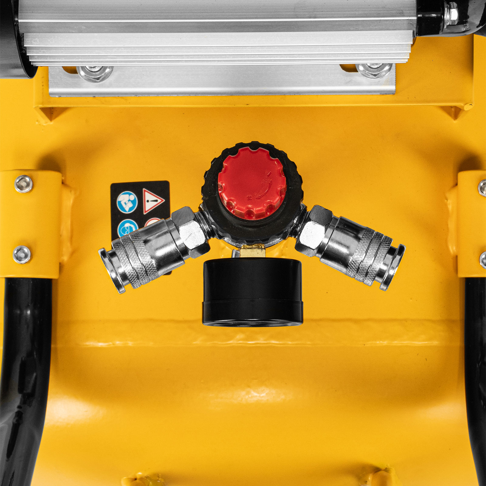 - Удобный контроль давления в ресивере и пневмомагистрали — компрессор оснащен двумя механическими манометрами.