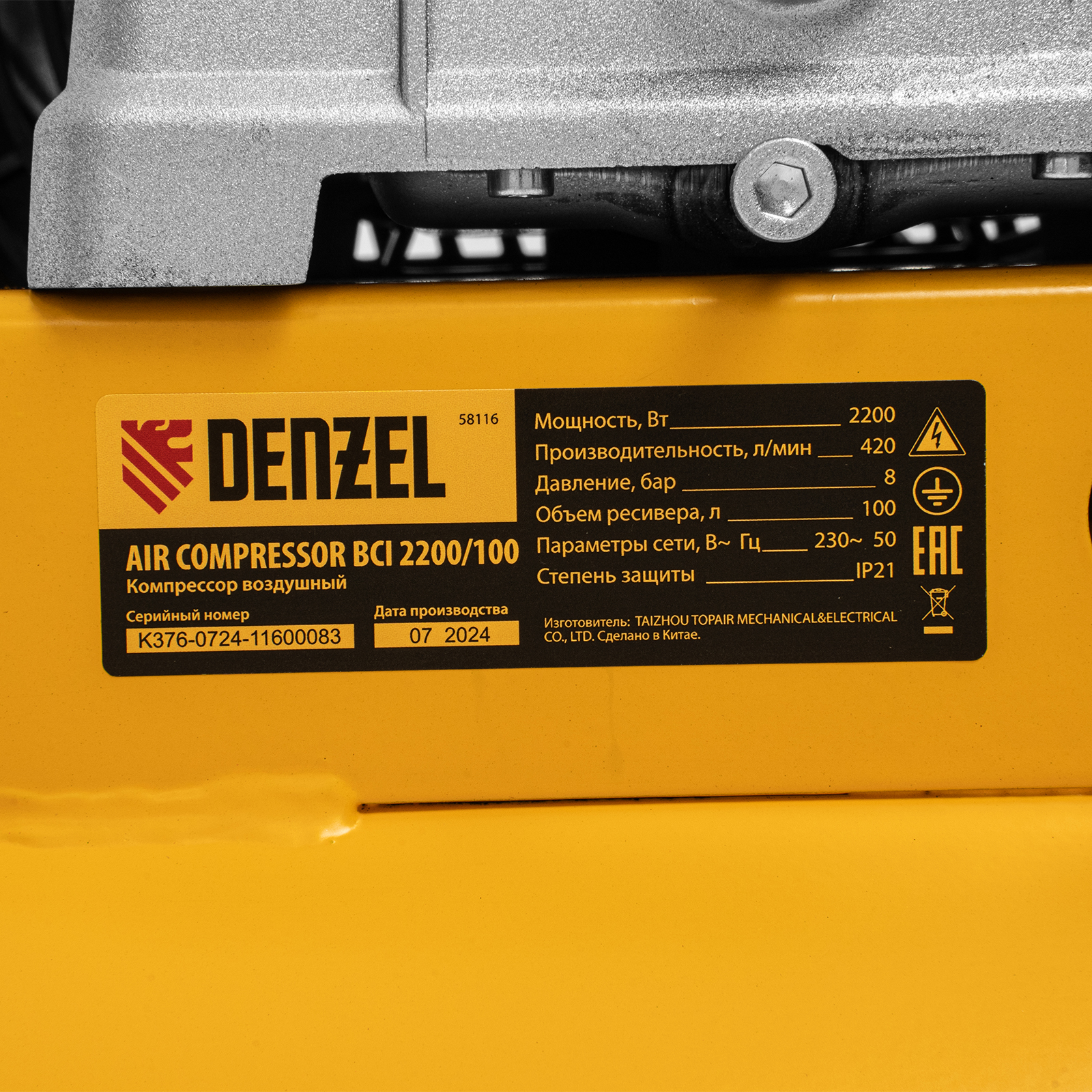 Компрессор воздушный рем. привод BCI 2200/100, 2,2 кВт, 100 литров, 420 л/мин Denzel в Казани