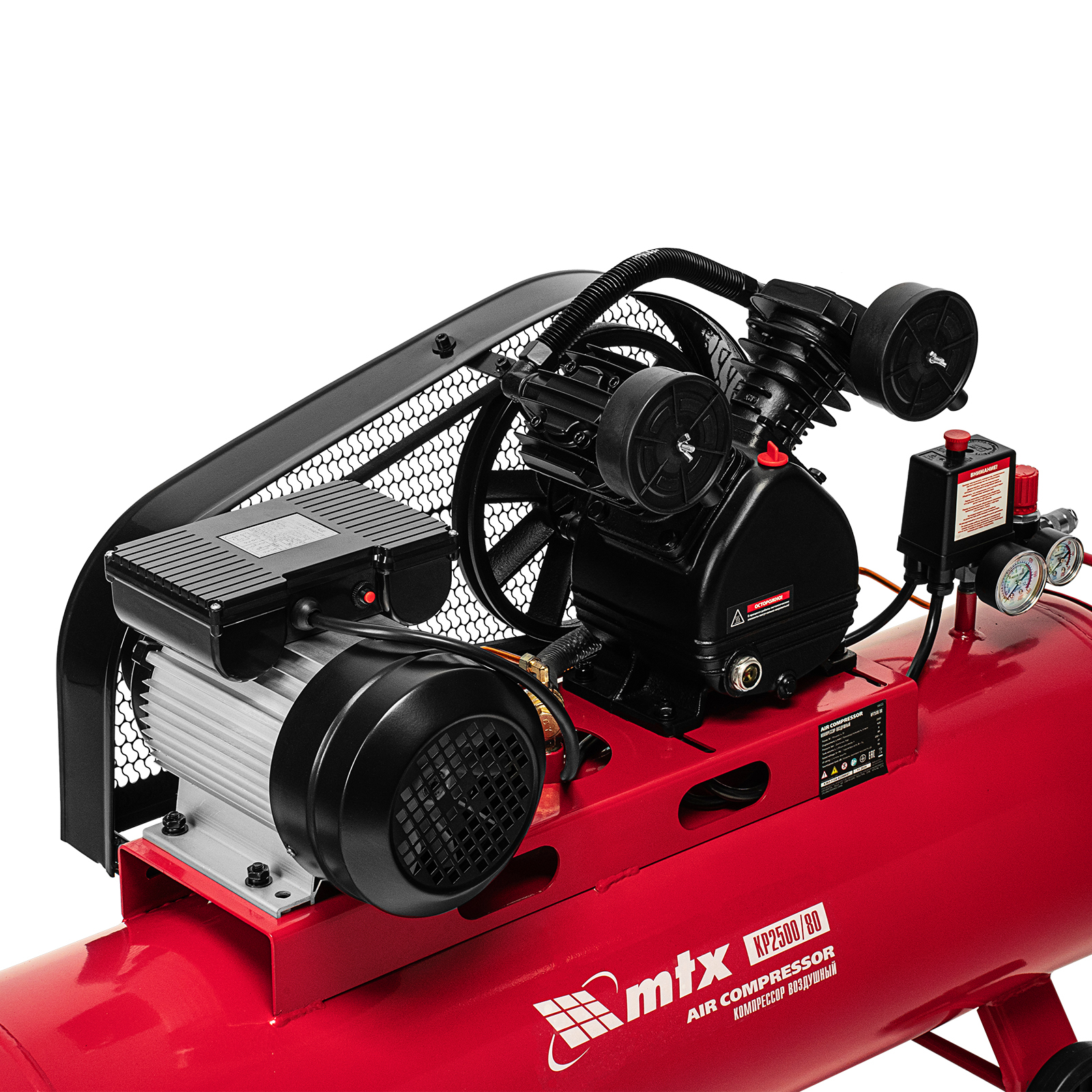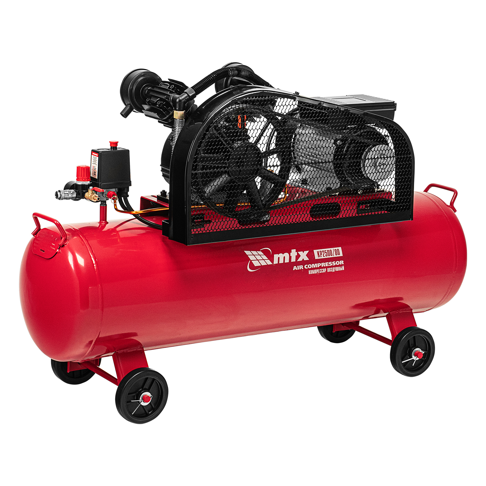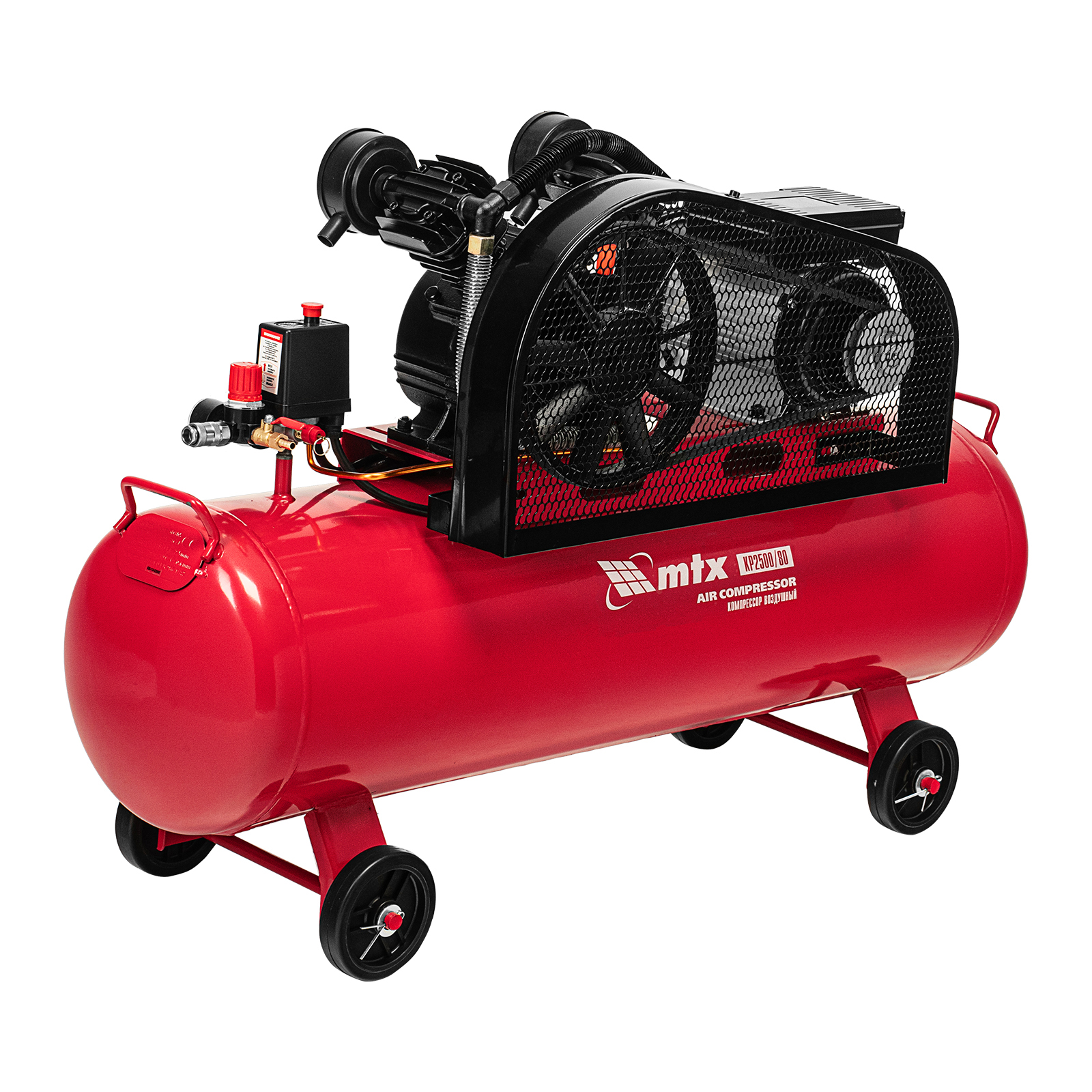 Компрессор воздушный ременный привод КР2500/80, 2,5 кВт, 80 литров, 420 л/мин МТХ