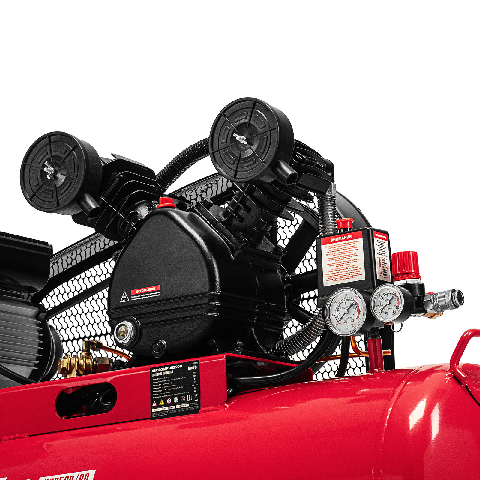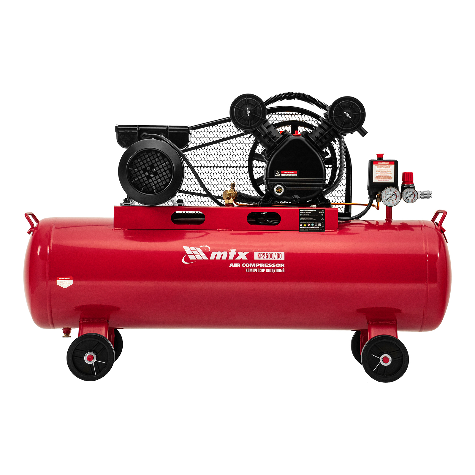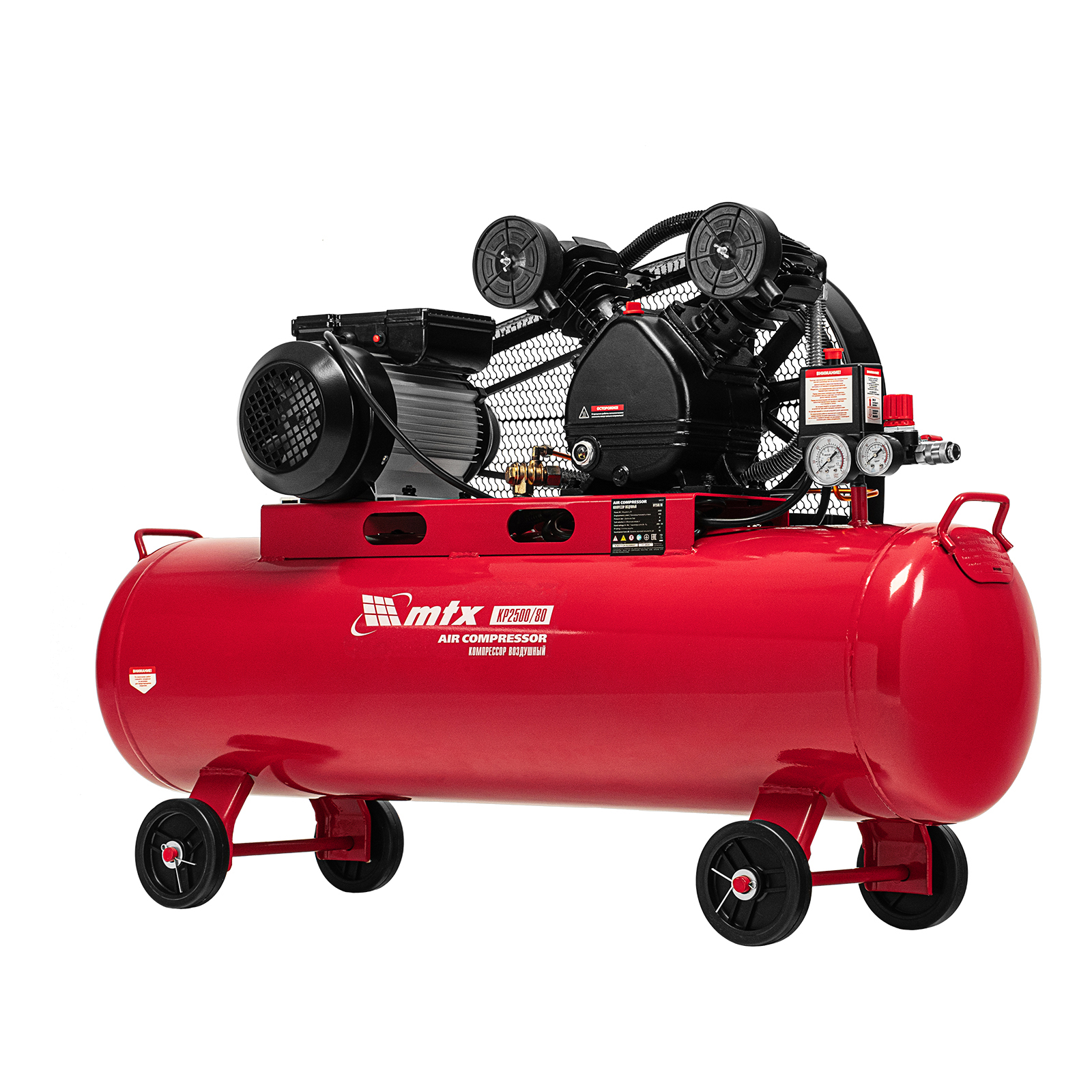Компрессор воздушный ременный привод КР2500/80, 2,5 кВт, 80 литров, 420 л/мин МТХ