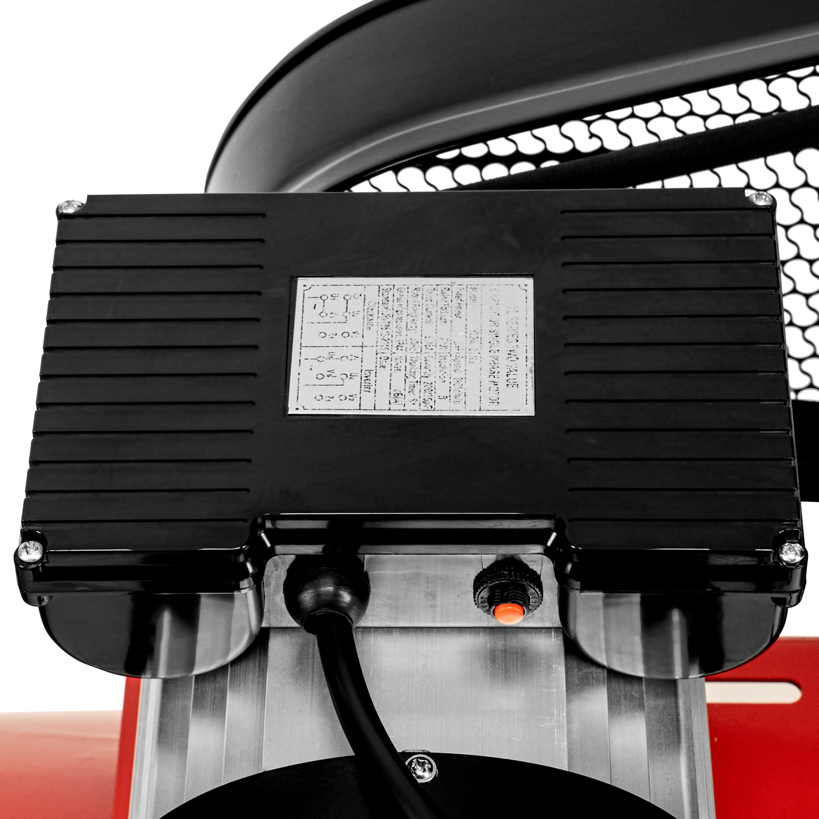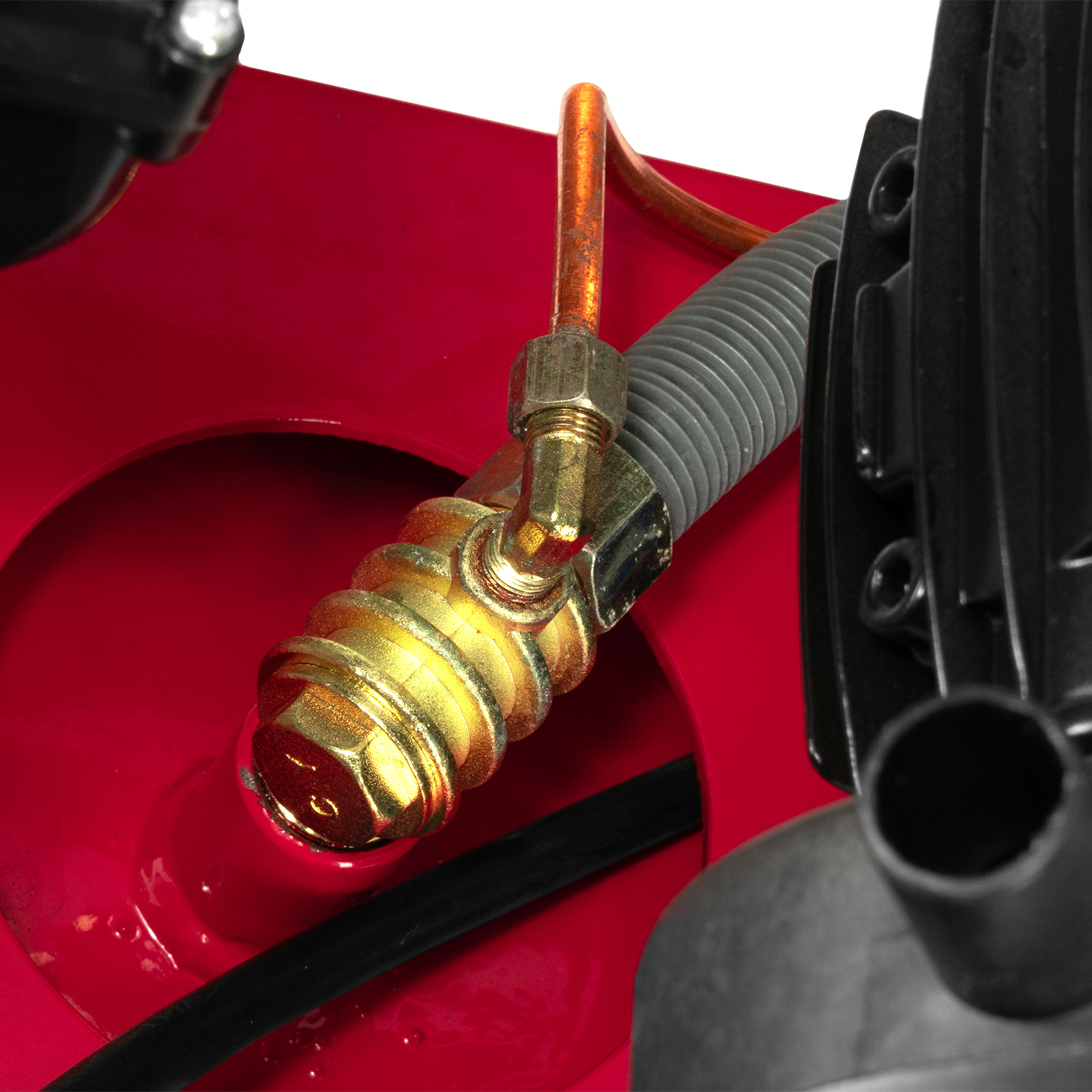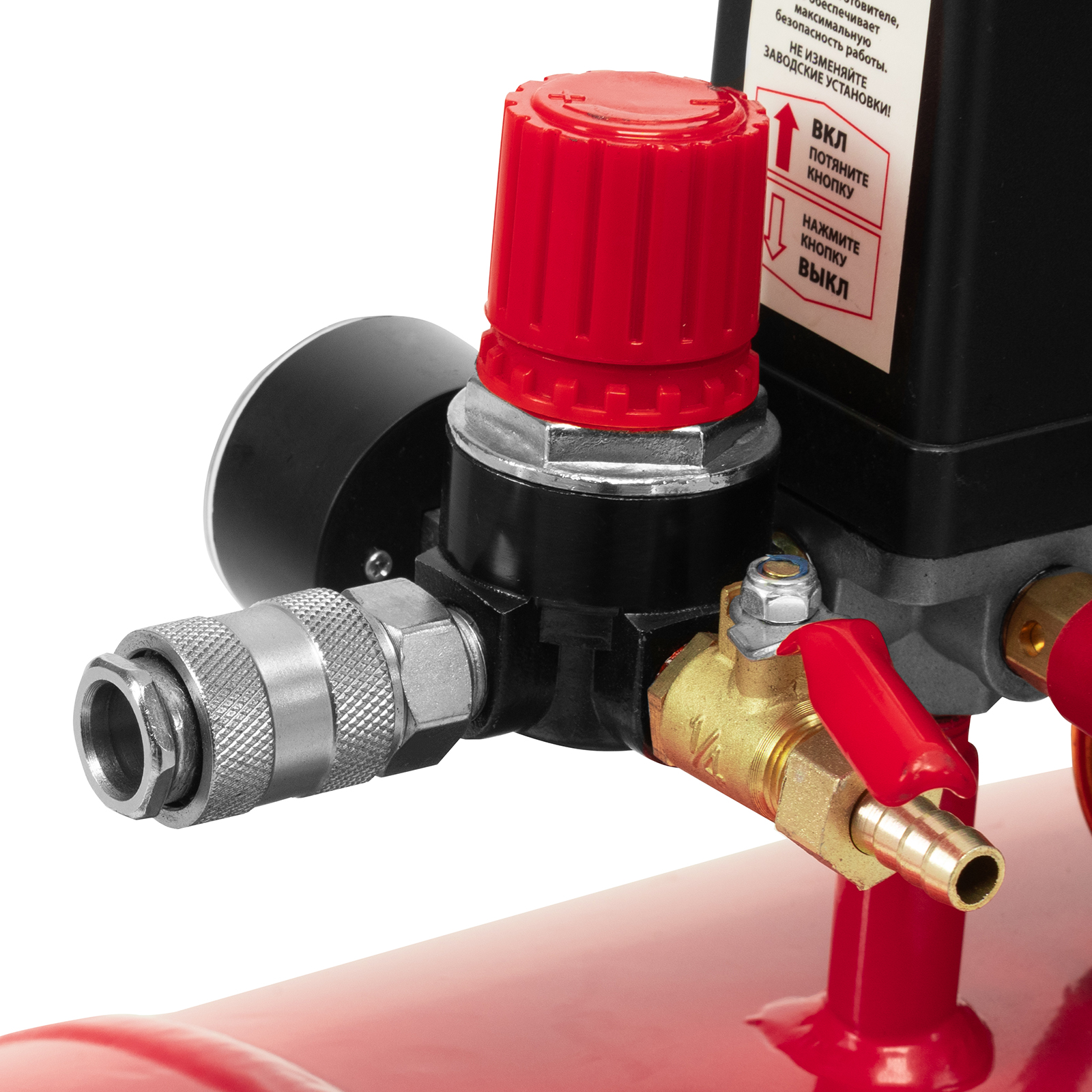 - Автоматическая регулировка производительности — прессостат останавливает двигатель при достижении максимального рабочего давления (8 бар) и запускает его при падении давления ниже минимально допустимого уровня.