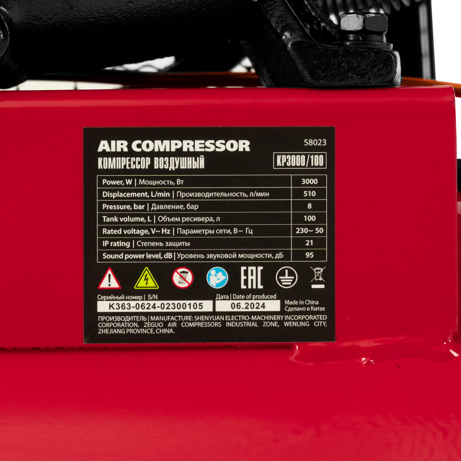 Компрессор воздушный ременный привод КР3000/100 3,0 кВт, 100 литров, 510 л/мин МТХ в Казани