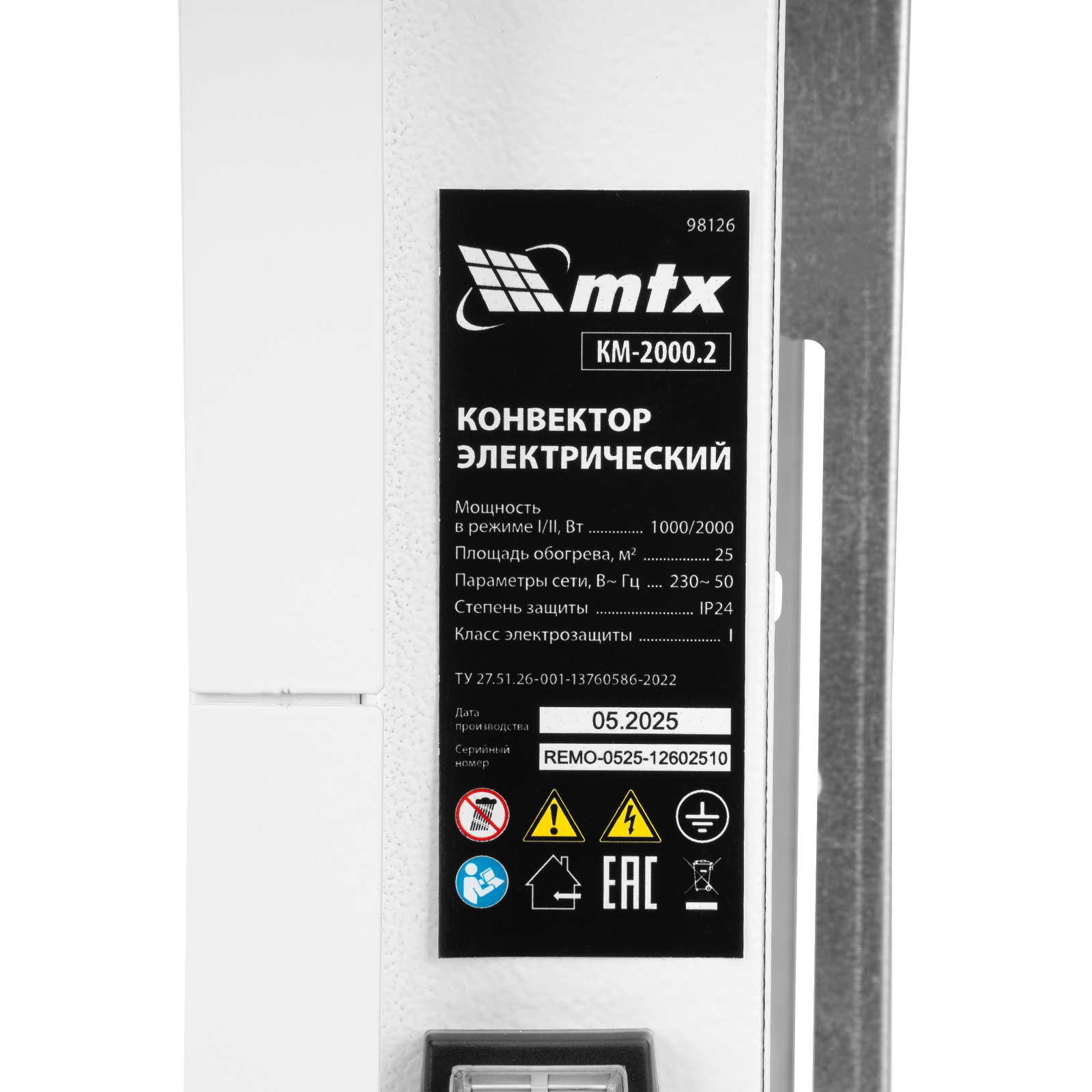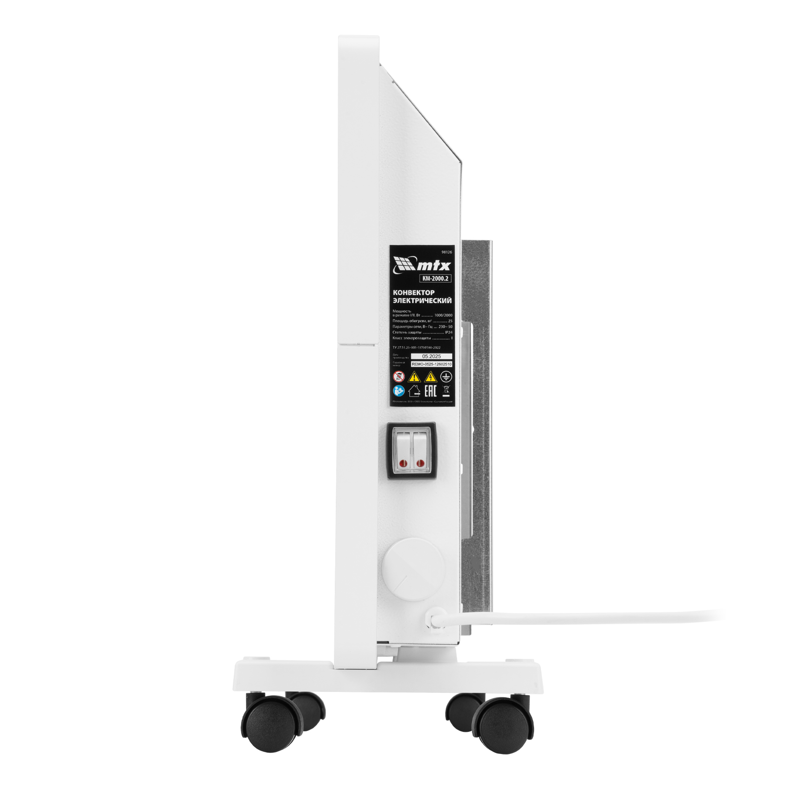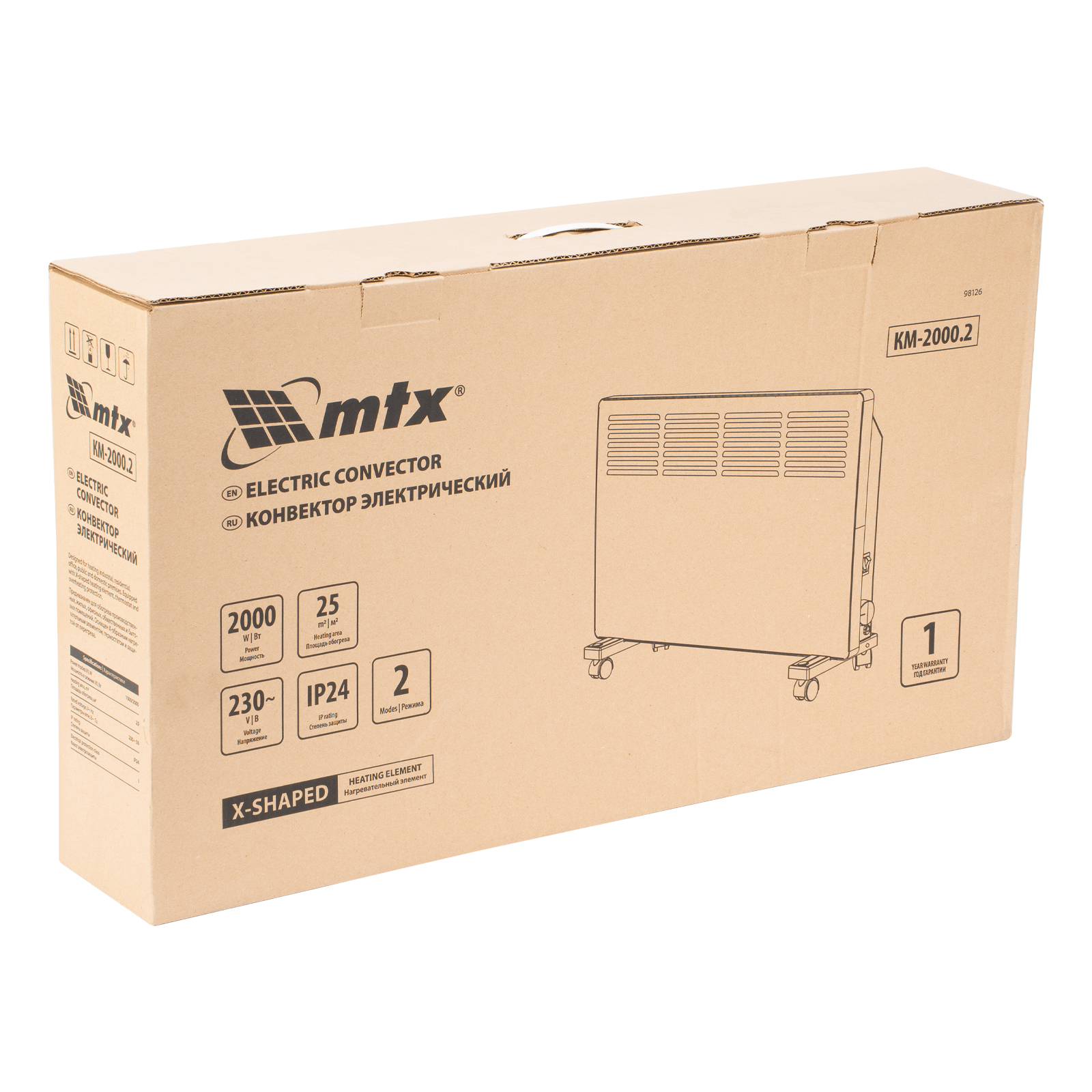 Конвектор электрический КМ-2000.2, 230 В, 2000 Вт, X-образный нагреватель, колеса, термостат MTX в Казани
