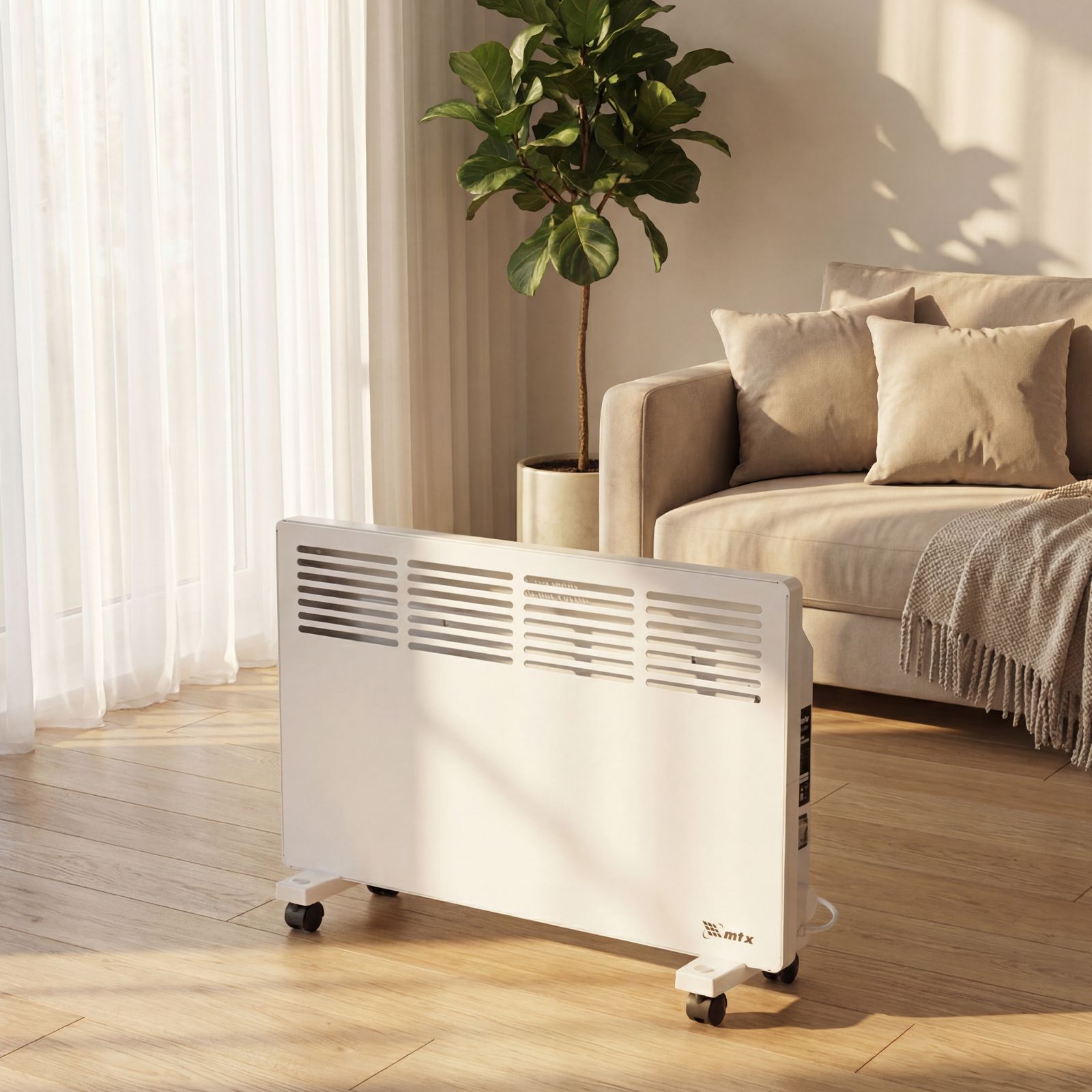 Конвектор электрический MTX KM-2000.2 98126 с X-образным нагревателем, колесами и термостатом, мощностью 2000 Вт, предназначен для использования в закрытых помещениях: квартирах, офисах, на производствах, в общественных местах и т.д. Рекомендуемая площадь обогрева составляет 25 кв.м. Х-образный нагревательный элемент обеспечивает быстрый и равномерный прогрев помещения до необходимой температуры, при этом не сушит воздух.