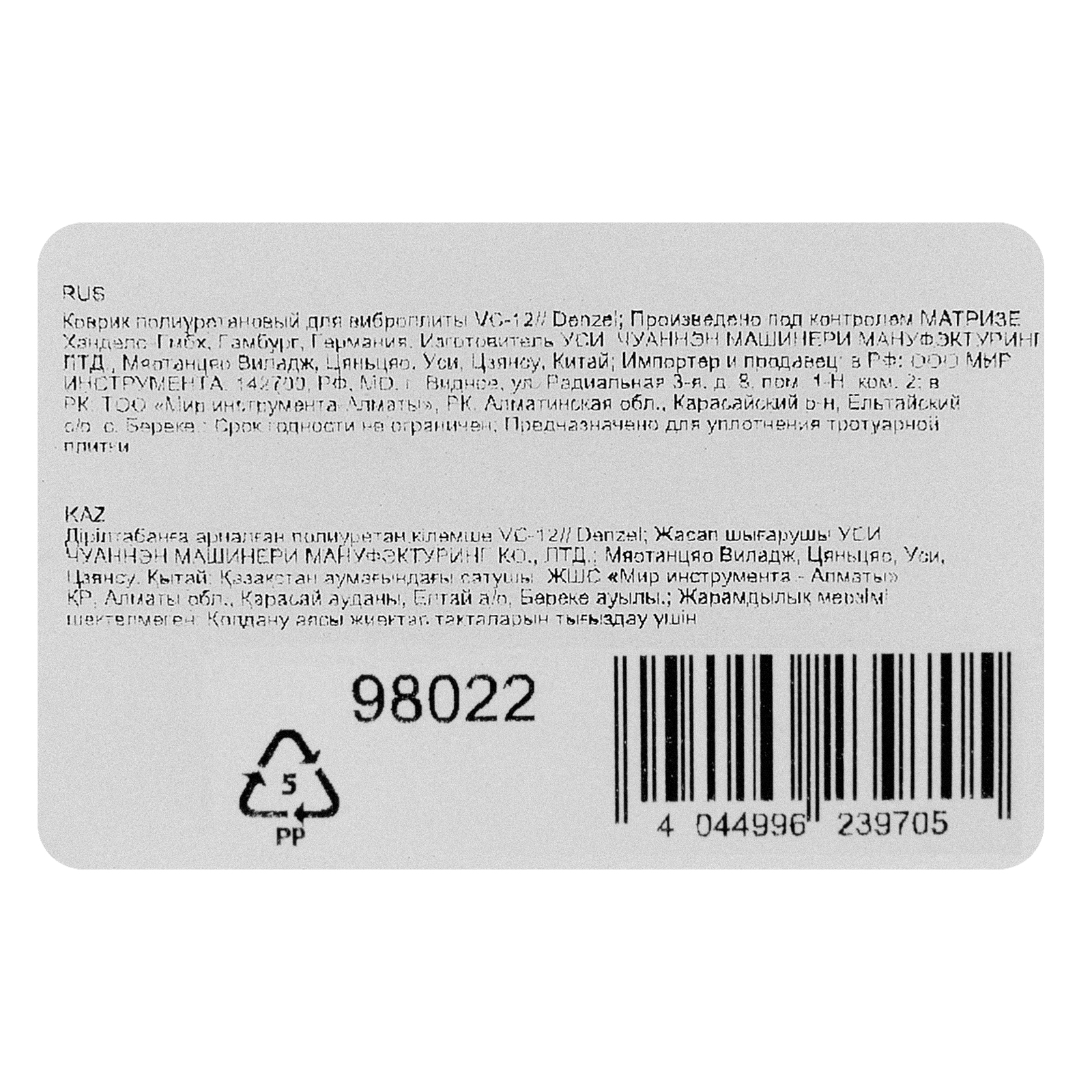 Коврик полиуретановый для виброплиты VC-30W Denzel в Казани