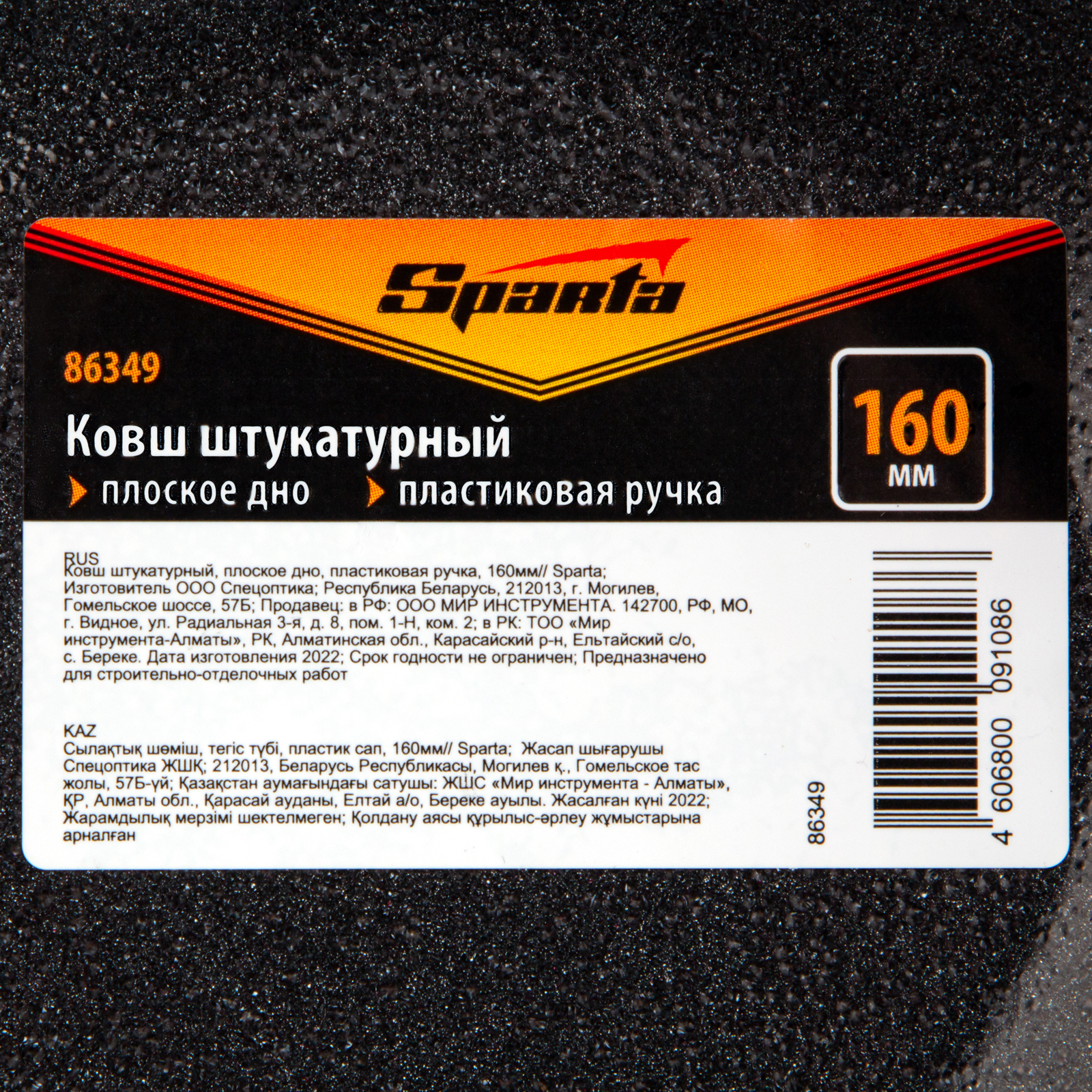 Стальной строительный ковш Sparta 86349 с рабочей частью в форме усеченной полусферы диаметром 160 мм и пластиковой рукояткой предназначен для нанесения штукатурки на поверхность стен и потолков при проведении отделочных работ.