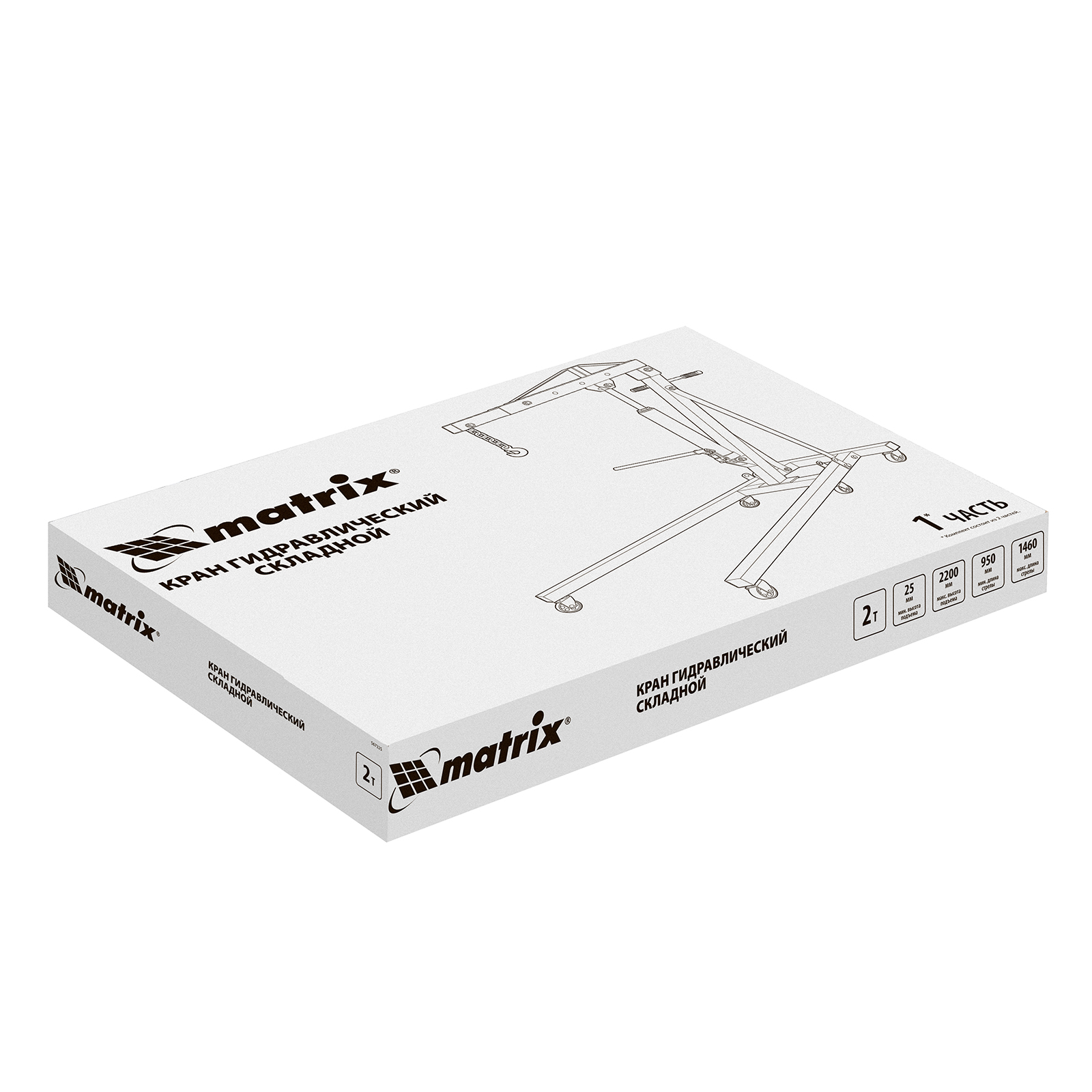 Кран гидравлический, 2 т, H подъема 25-2200 мм, складной (комплект из 2 частей) Matrix