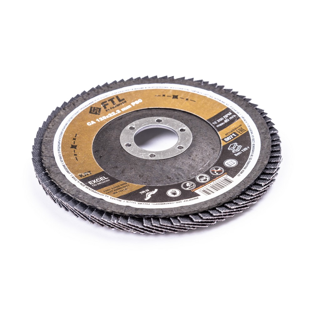Лепестковый диск для шлифования по металлу FTL Excel 29 125 х 22,2 мм P80 – это расходный материал для ручной угловой шлифовальной машины при работе с изделиями из чёрных металлов, чугуна. Также подходит для обработки древесины. Диск предназначен для шлифовки и обдирки разных видов поверхностей, зачистки сварных швов, арматуры, профильных труб, стальных уголков, швеллера, удаления краски, ржавчины, обработки кромок. Коническая форма куполообразного диска (тип 29 или КЛТ2) обеспечивает большое пятно контакта с поверхностью и более агрессивный съём материала. Оптимальный угол работы для конического КЛТ - от 15 до 25 градусов к поверхности. Серия EXCEL – это премиальный по сочетанию свойств абразивный состав для чёрных металлов на базе кальцинированного оксида алюминия. Добавление кальция в состав абразива увеличивает сопротивление высокой температуре и замедляет износ режущих зёрен. Такие круги работают дольше и с большим прижимом (требуется УШМ от 1000 Вт). (!) Не рекомендуется для работы по изделиям из нержавеющей стали.ИЗНОСОСТОЙКОСТЬ: Благодаря премиальной формуле режущая и шлифовальная способность абразива снижается в процессе работы значительно медленнее, позволяя выполнить больше работы.ЭФФЕКТИВНАЯ РАБОТА С СИЛЬНЫМ ПРИЖИМОМ: Машинная сборка при производстве исключает ошибки при наклеивании лепестков на основание диска, а плотная набивка обеспечивает более сильный прижим во время работы.УНИКАЛЬНЫЙ СОСТАВ: Материал абразива кальцинированный оксид алюминия (глинозём) — это корунд с добавлением кальция для лучшего сопротивления высокой температуре и продления срока службы диска.ДВОЙНОЕ МЕТАЛЛИЧЕСКОЕ КОЛЬЦО: Двойное металлическое кольцо на диске обеспечивает плотную посадку на фланец УШМ, исключая биения и вибрацию при работе.ГЕРМЕТИЧНОСТЬ УПАКОВКИ: Диски упакованы в специальную термоусадочную герметичную плёнку, которая предохраняет от пыли и влаги при длительном хранении в условиях повышенной влажности, на строительных объектах и крупных промышленных производствах.ПРЕИМУЩЕСТВА:Для работы с чёрным металлом, чугуном, деревомТип профиля 29 (куполообразный, конической формы)Максимальное пятно контакта с поверхностью для более агрессивного съёма материалаПремиальный состав абразиваЭлектростатический метод нанесения абразиваВысокая износостойкость (долгий срок службы)Состав на базе кальцинированного оксида алюминияВозможность работы с большим прижимом (требуется мощная УШМ)Фибергласс – прочное стекловолоконное основание дискаДвойное металлическое кольцо для плотной посадки на фланец УШМКОМПЛЕКТАЦИЯ: Круг лепестковый для шлифования по металлу FTL Excel 29 125 х 22,2 мм P80 в термоусадочной плёнке со вкладышем в дополнительном ПЭ пакете – 10 шт.