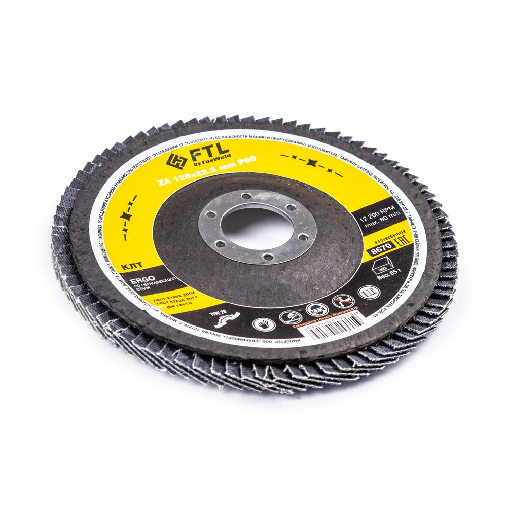 Круг лепестковый для шлифования по нержавеющей стали FTL Ergo цирконий 29 125 х 22,2 мм P60 в Казани