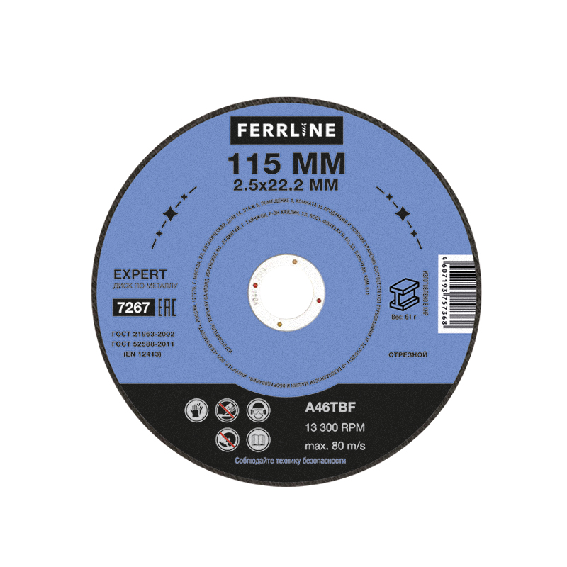 Круг отрезной по металлу FerrLine Expert 115 х 2,5 х 22,2 мм A46TBF в Казани