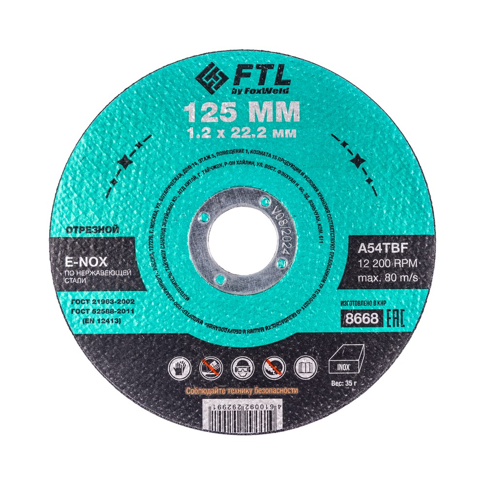Круг отрезной по нержавеющей стали FTL E-Nox 125 х 1,2 х 22,2 мм A54TBF в Казани