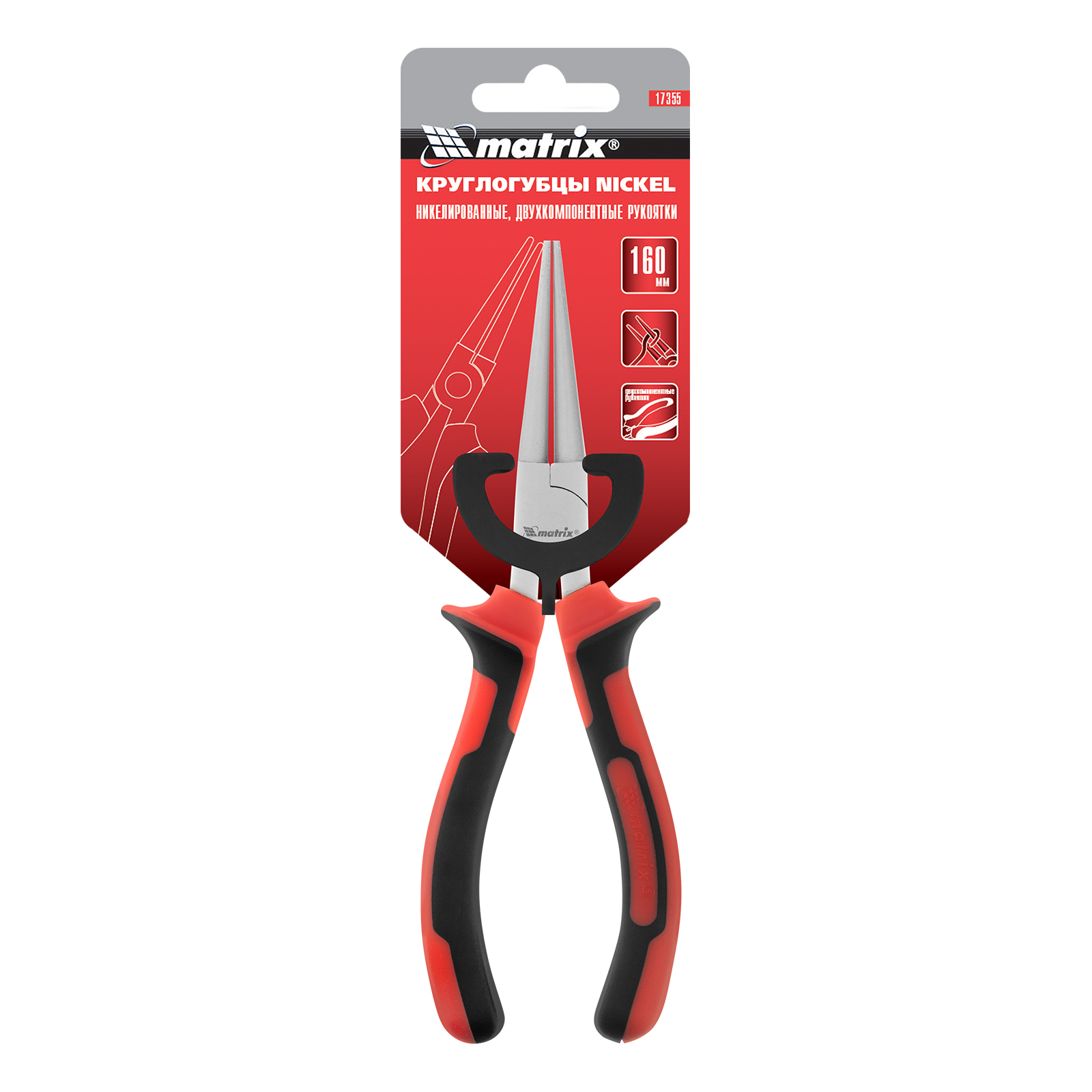 Круглогубцы Nickel, 160 мм, никелированные, двухкомпонентные рукоятки Matrix
