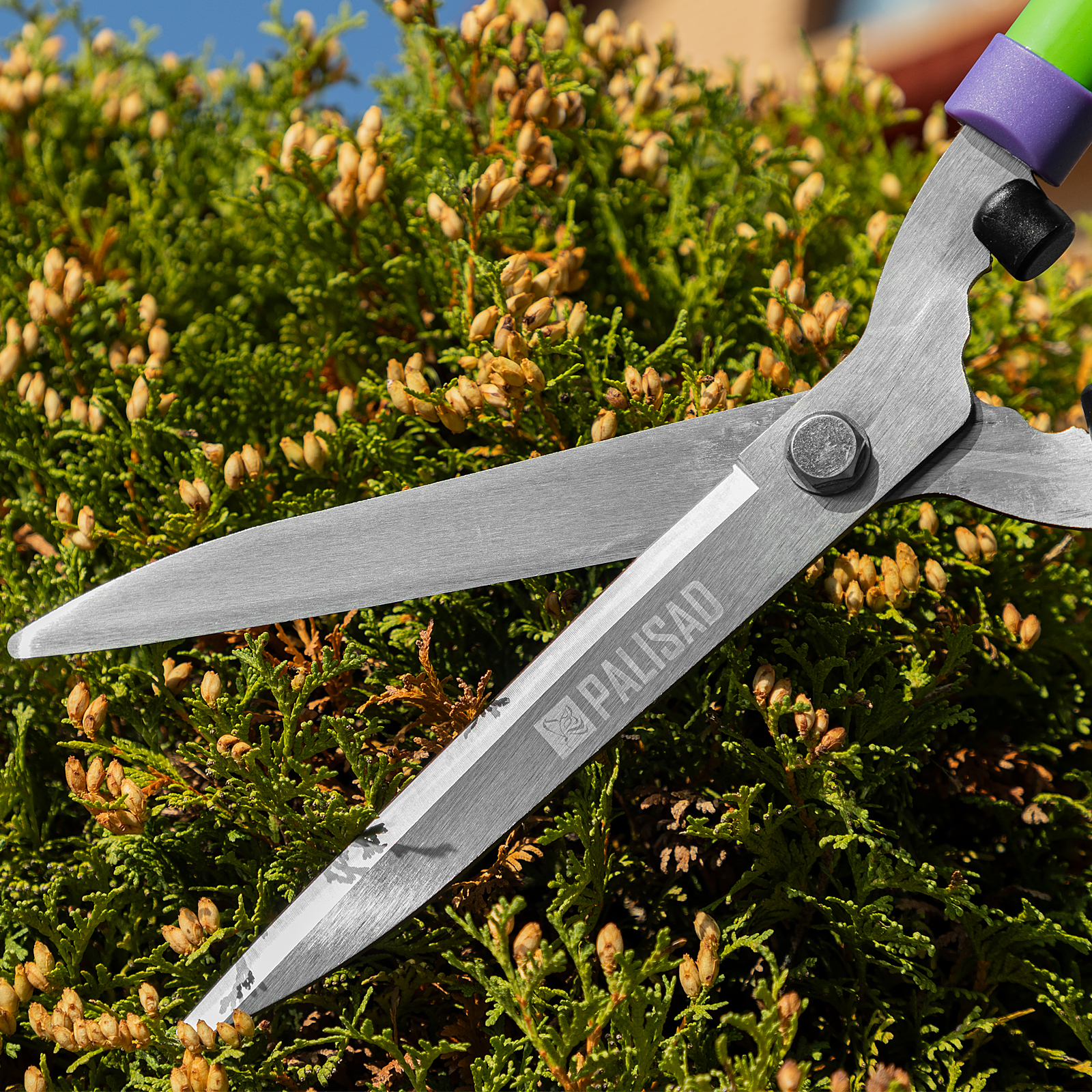 Кусторез Palisad 60591 длиной 550 мм, со стальными обрезиненными рукоятками, пригодится садоводам для ухода за участком. Поможет поддерживать аккуратный вид кустарников и живых изгородей. Кусторез подходит для подрезания молодых веток толщиной до 10 мм с целью омоложения и придания им нужной формы.
