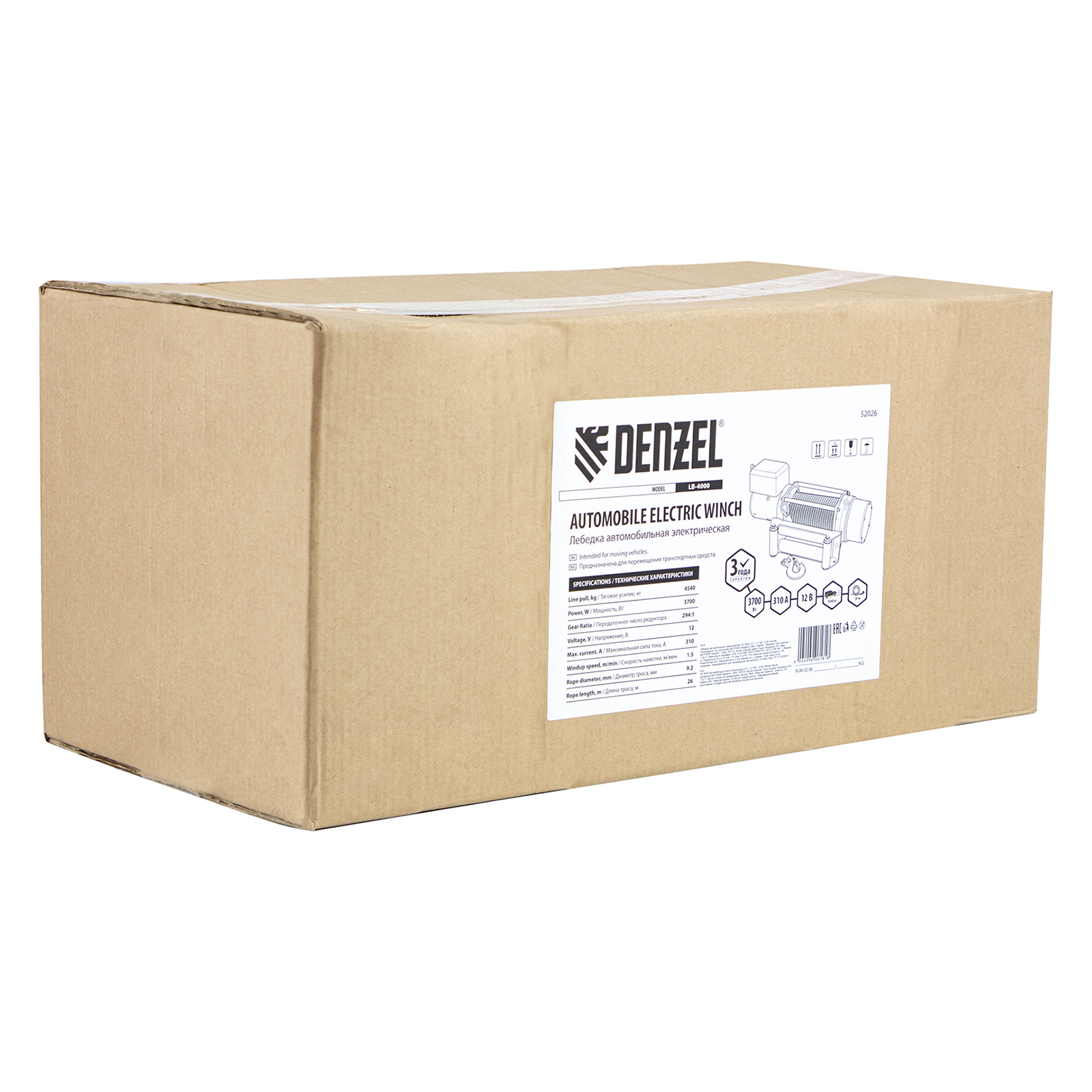 Лебедка автомобильная электрическая LB-4000, 4.5 т, 3.7 кВт, 12 В Denzel в Казани