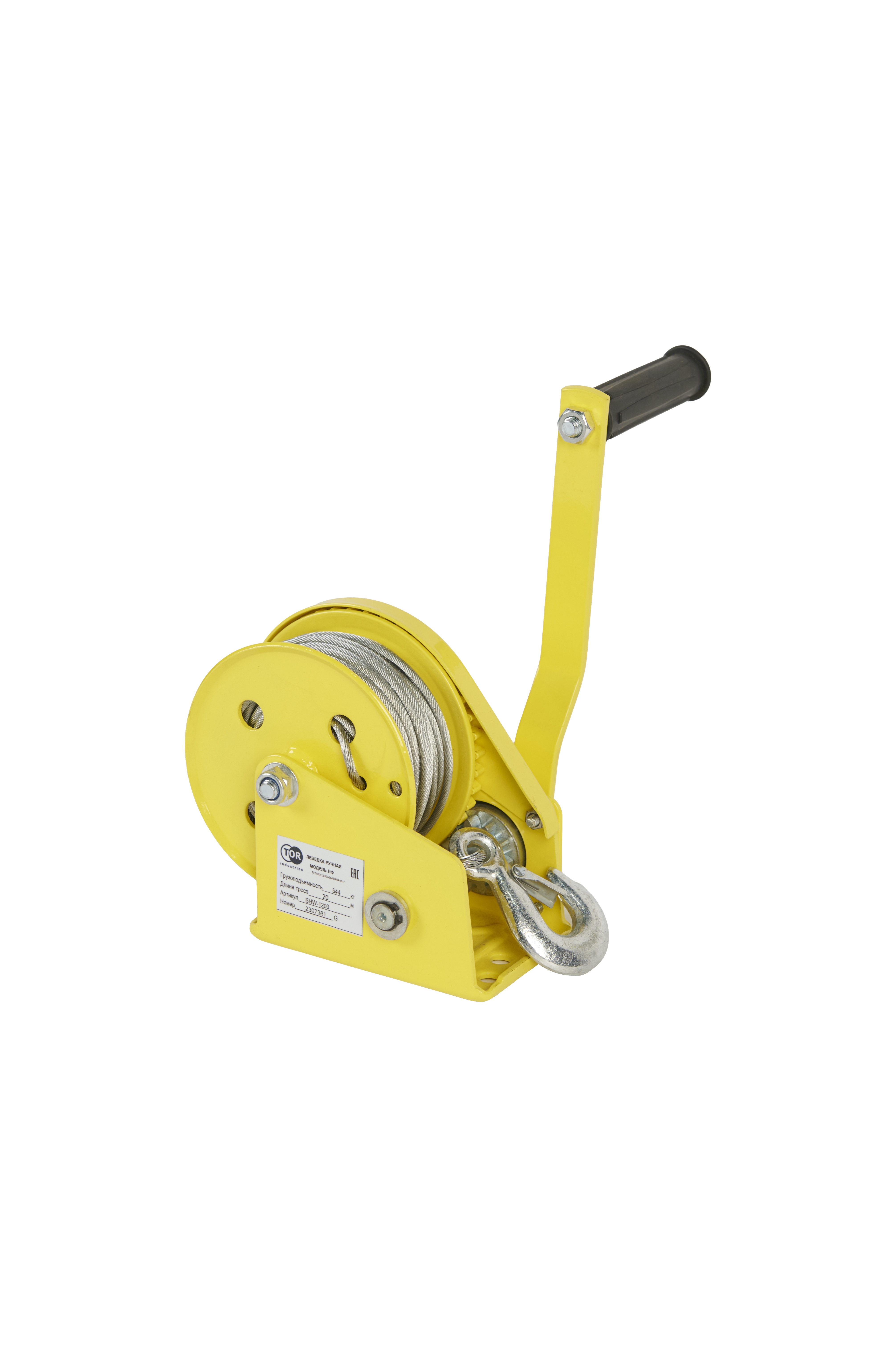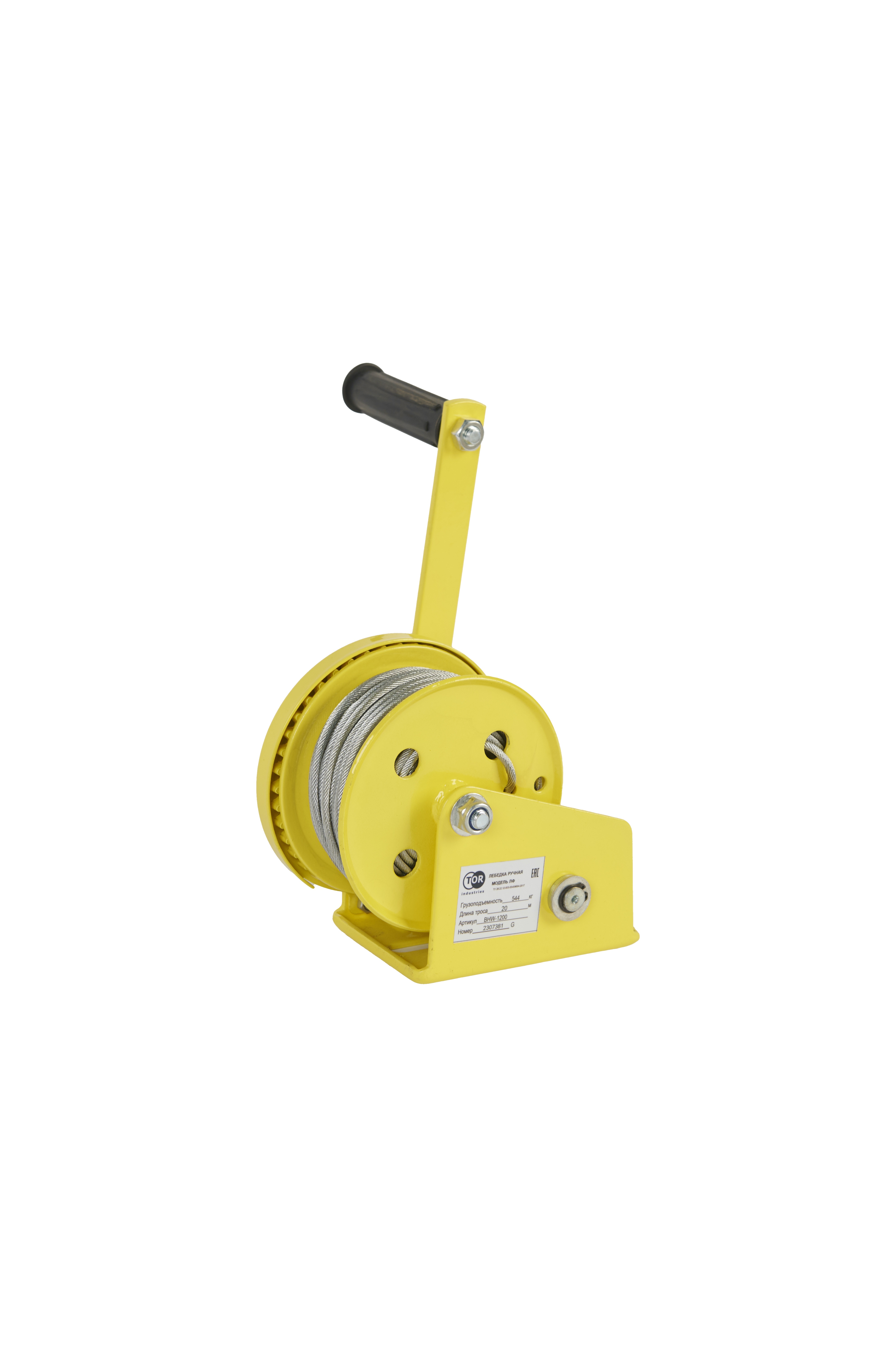 Лебедка ручная барабанная с тросом 540кг 20м стальной корпус TOR BHW в Казани