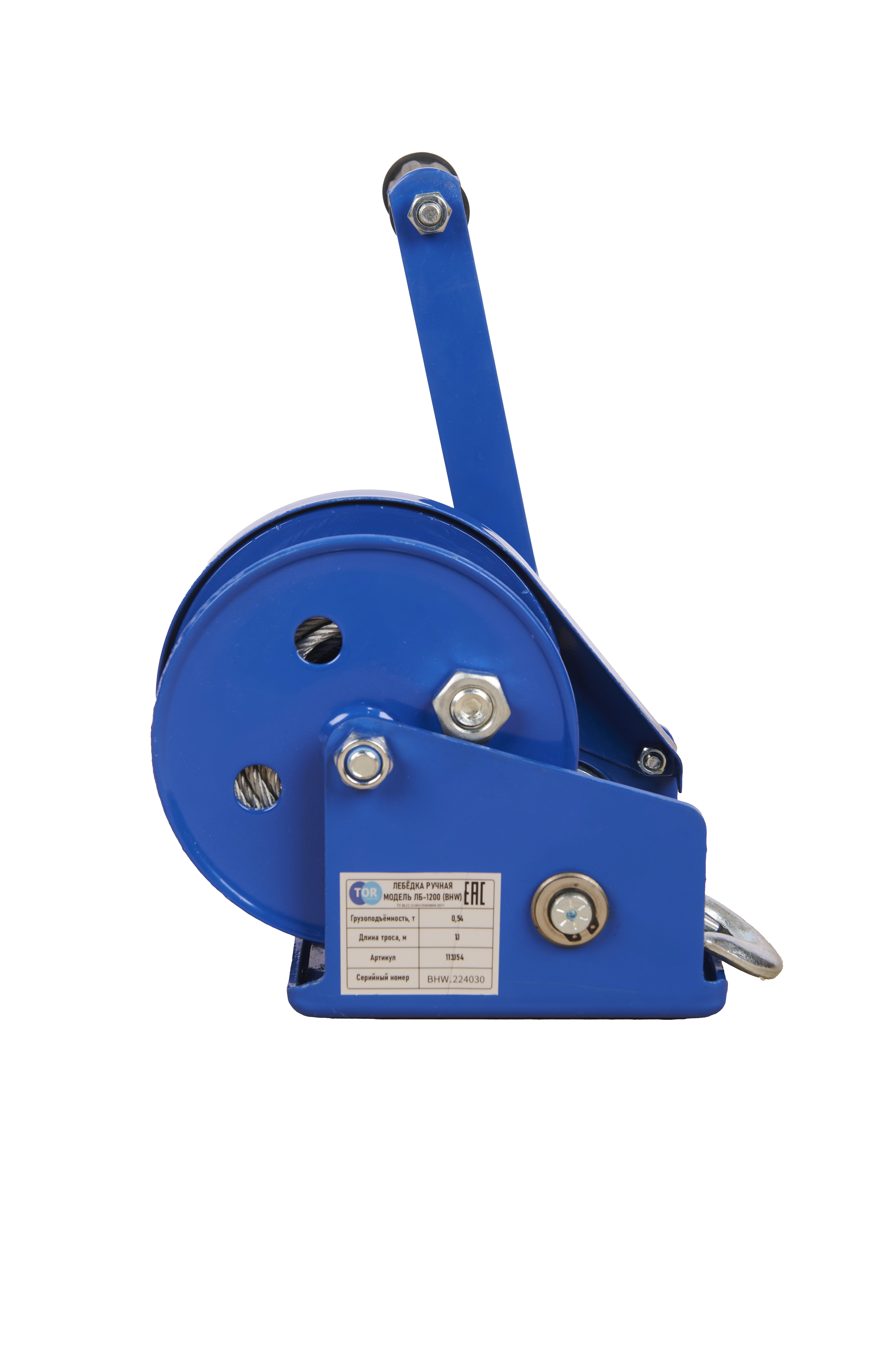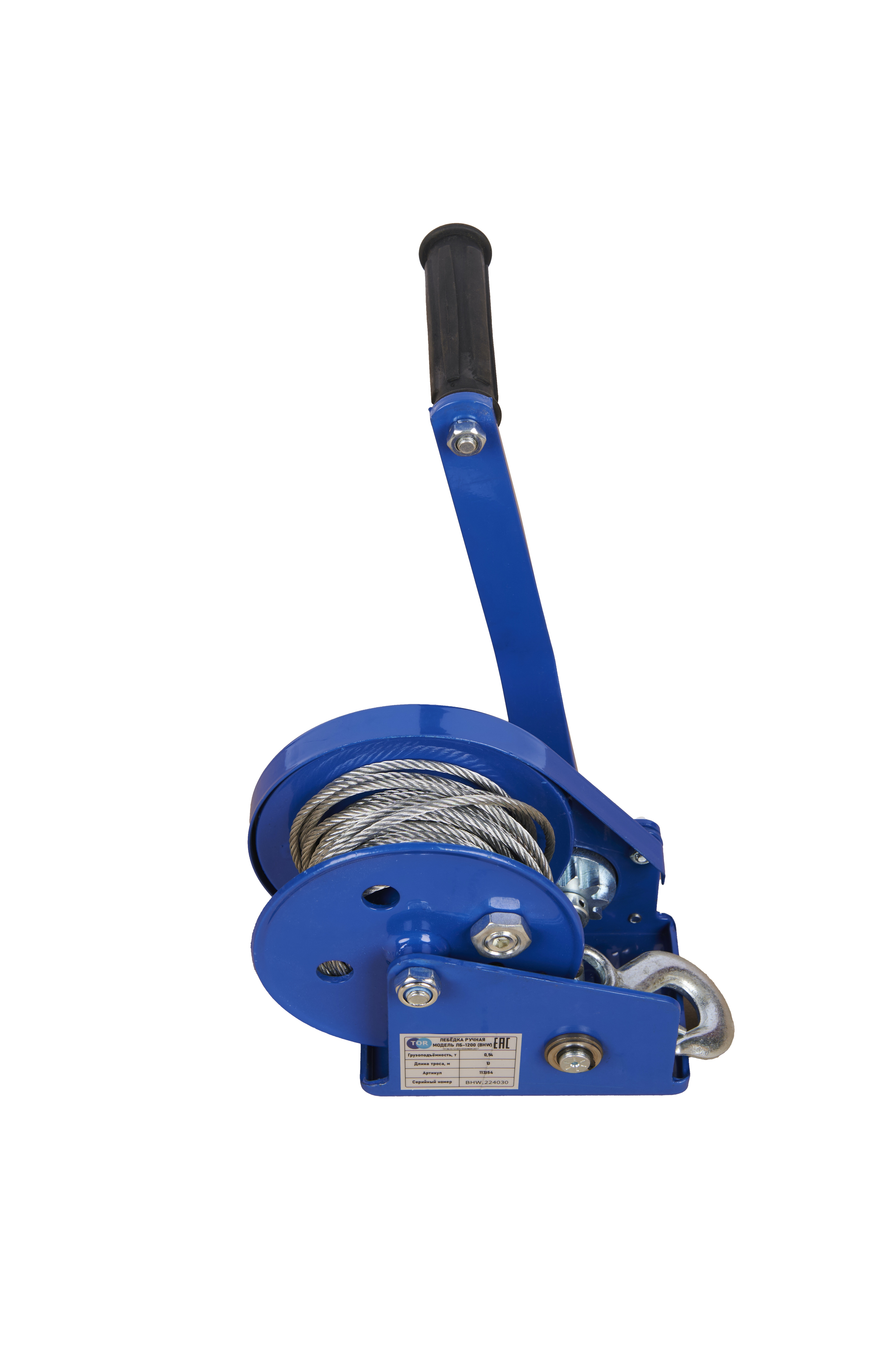 Лебедка ручная барабанная с тросом 810кг 10м стальной корпус TOR BHW в Казани
