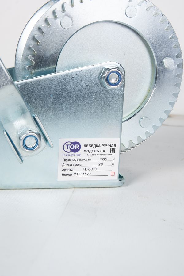 Лебедка ручная TOR ЛФ-3000 (FD) г/п 1,3 т длина троса 20 м