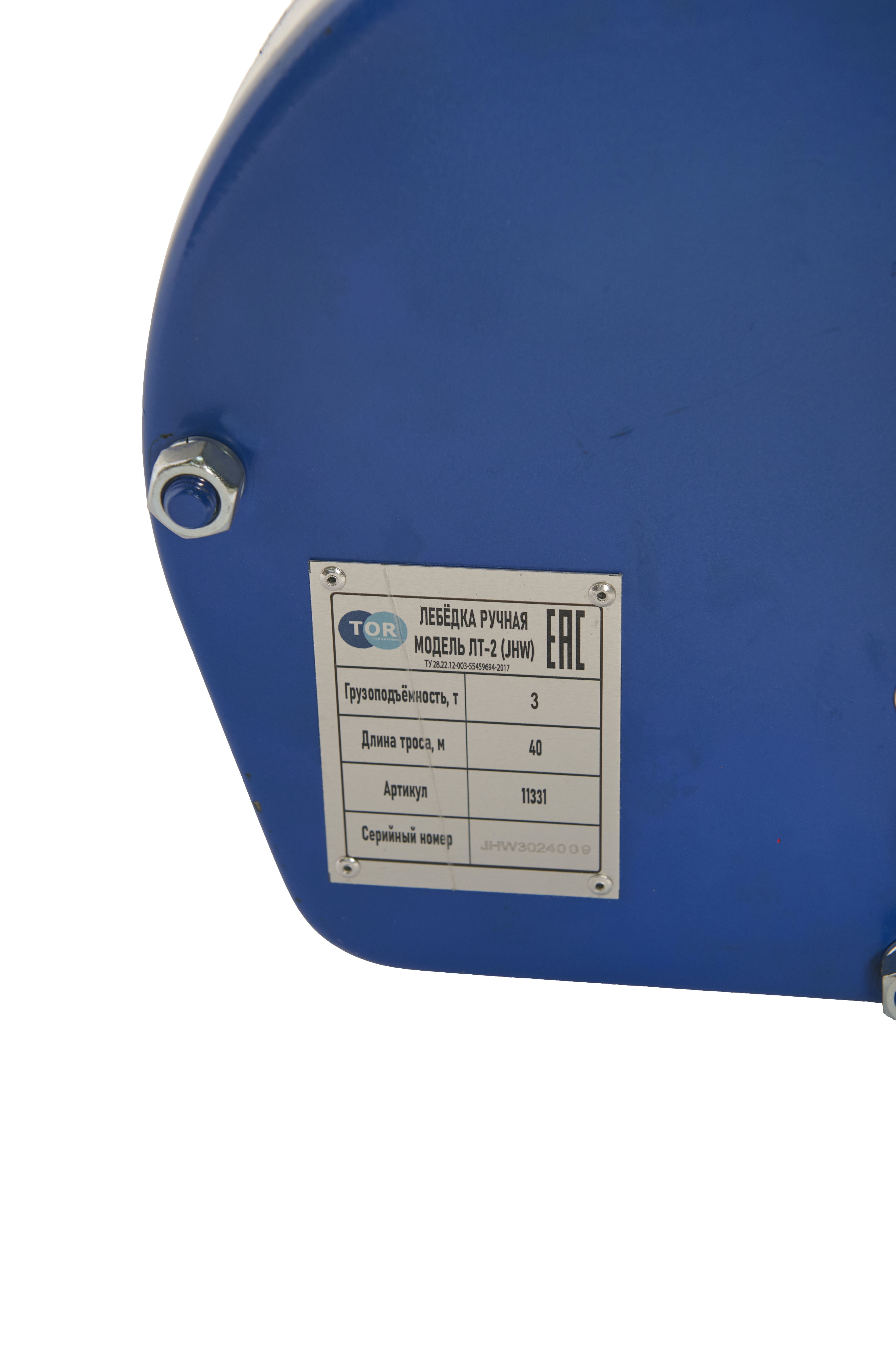 Лебедка ручная барабанная с тросом 3000кг 40м с храповым механизмом TOR JHW в Казани